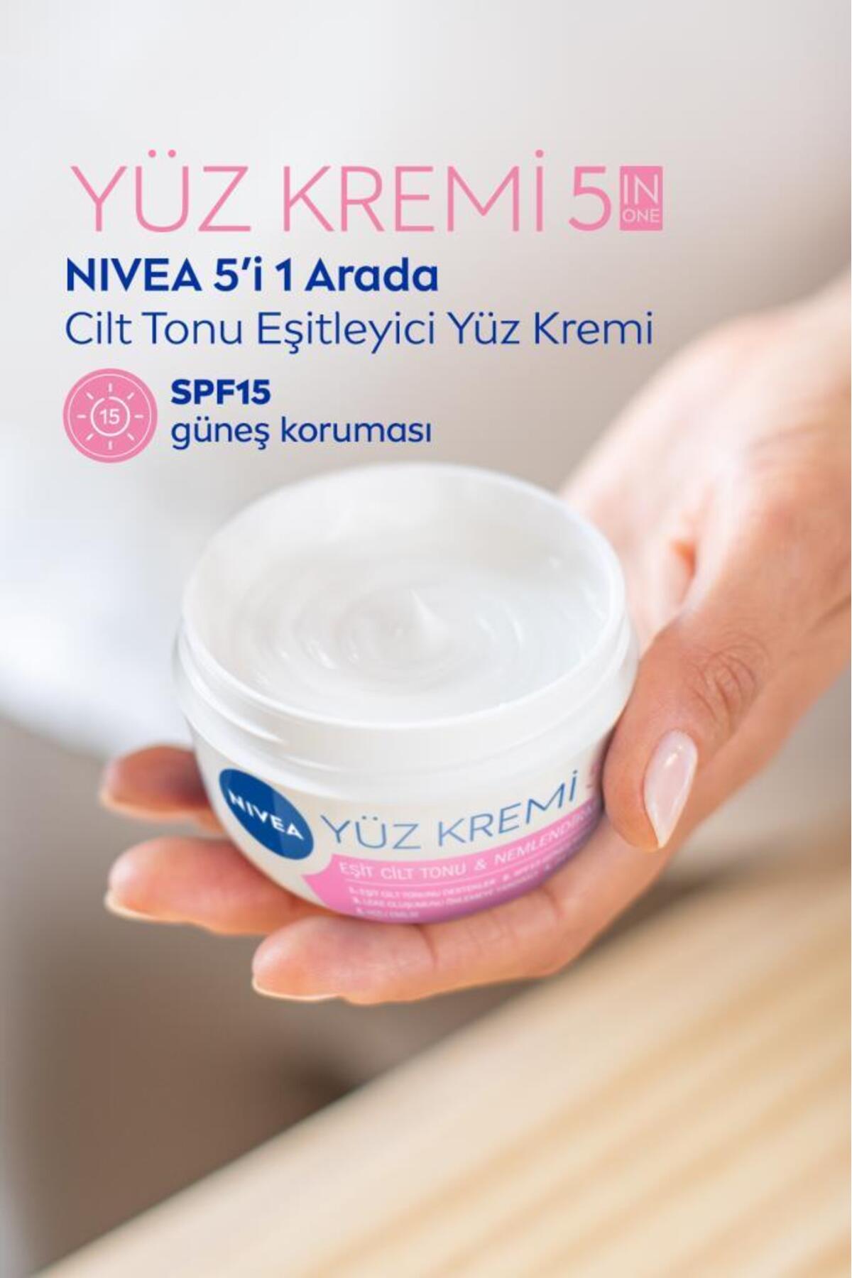• Türkiye’nin En sevilen el ve vücut bakım markası NIVEA’dan!• Eşit cilt tonunu destekler.; • Gün boyu cildi nemlendirir• Yağlı his bırakmaz ve hızlı emilir.; • SPF 15 içeriğiyle güneş koruması sağlar.; • Cildi makyaj için hazırlar.; • Cilt leke oluşumunu önlemeye yardımcı olur.; • Hassas ciltler için uygundur.; • Dermatolojik olarak onaylanmıştır.; • Nasıl kullanılır?: NIVEA besleyici yüz bakım kremini temizlenmiş yüzünüze küçük dairesel hareketlerle nazikçe masaj yaparak uygulayın.; Gözle direkt temasından kaçının.