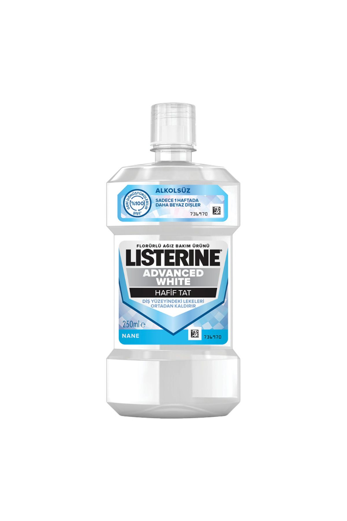 Kendinize daha çok güvenmenizi ve daha çok gülmenizi istiyoruz, bu yüzden LISTERINE® Advanced White’ı yarattık. Çözücü olarak etanol içeren benzersiz formülü ile lekelere karşı savaşır ve dişlerinizi renk değişiminden korur. LISTERINE® Advance White’ın 2 haftada daha beyaz dişler sağladığı klinik olarak kanıtlanmıştır. • Aşındırmayan beyazlatma teknolojisi ile dişlerdeki lekeleri ortadan kaldırır. • İçeriğindeki güçlü esansiyel yağlar ağız hijyeni sağlar ve diş yüzeyini temizler. • Oluşturduğu koruyucu kalkan ile yeni lekelerin oluşumunu engeller. • Florür mineralleri geri kazandırmaya ve dişlerinizi güçlendirmeye yardımcı olur. Kullanım • Sabah ve akşam günde 2 kez, dişlerinizi fırçaladıktan sonra kullanınız. • 10 ml’yi ( 5 ml’lik 2 tatlı kaşığı) bir bardağa dökünüz. • Diş ve diş etlerinizi 60 saniye boyunca çalkalayınız ve tükürünüz.