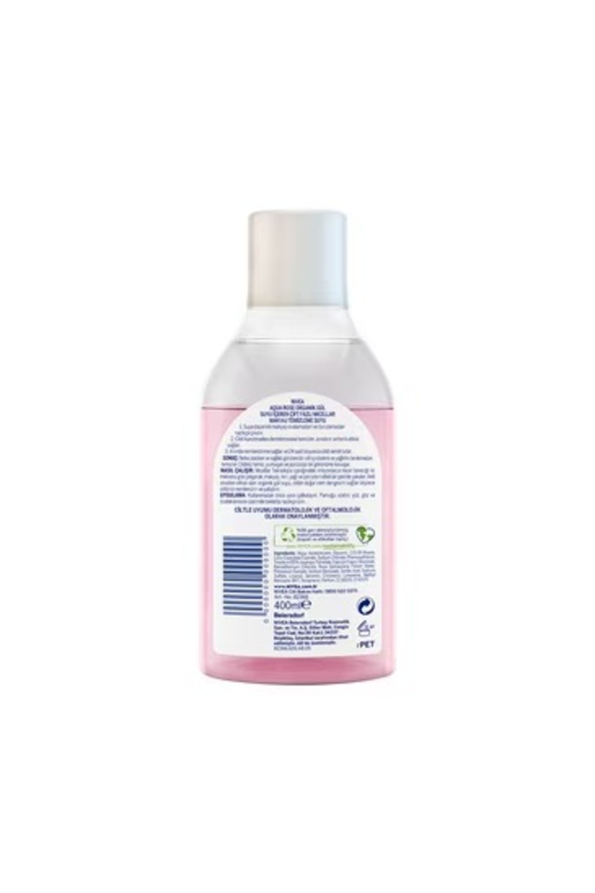 Türkiye’nin 1 numaralı yüz temizleme markası nıvea’dan nıvea aqua rose organik gül suyu içeren çift fazlı makyaj temizleme suyu 400 ml Nivea aqua rose micellar gül suyu içeren çift fazlı makyaj temizleme suyu 400 ml ne işe yarar? Suya dayanıklı makyajı ovalamadan ve durulamadan çıkarır, etkili makyaj temizleme sağlar. ; Cildi kurutmadan yüz temizleme sağlar, cildi arındırır, ve tonik etkisi sağlar. ; 24 saat nemlendirme sağlar Yüz, göz ve dudak temizleme için kullanılır Nefes alabilen ve sağlıklı görünen bir cilt için kalıntı ve yağlı his bırakmadan temizler. ; Cildin temiz, yumuşak ve pürüzsüz bir görünüm sağlar. ; Nivea aqua rose micellar gül suyu içeren çift fazlı makyaj temizleme suyu 400 ml nasıl kullanılır? Kullanmadan önce iyice çalkalayın. ; Pamuğu ıslatın, yüz, göz ve dudaklarınızın üzerinde bekletip nazikçe silin Ciltle uyumu dermatolojik ve oftalmalojik olarak onaylanmıştır En iyi sonuç için nıvea aqua rose yüz bakım ailesini birlikte kullanmanız tavsiye edilir: Nıvea aqua rose jel nemlendirici yüz bakım kremi, nıvea aqua rose tonik ve nıvea aqua rose micellar makyaj temizleme suyu Nıvea bakım güvencemiz: 100 yıllık cilt bakım uzmanlığımız ile en yüksek kalite standartlarına sahip içerikleri seçiyoruz Nivea aqua rose micellar gül suyu içeren çift fazlı makyaj temizleme suyu 400 ml hangi cilt tipleri için uygundur? Tüm cilt tipleri için uygundur.;