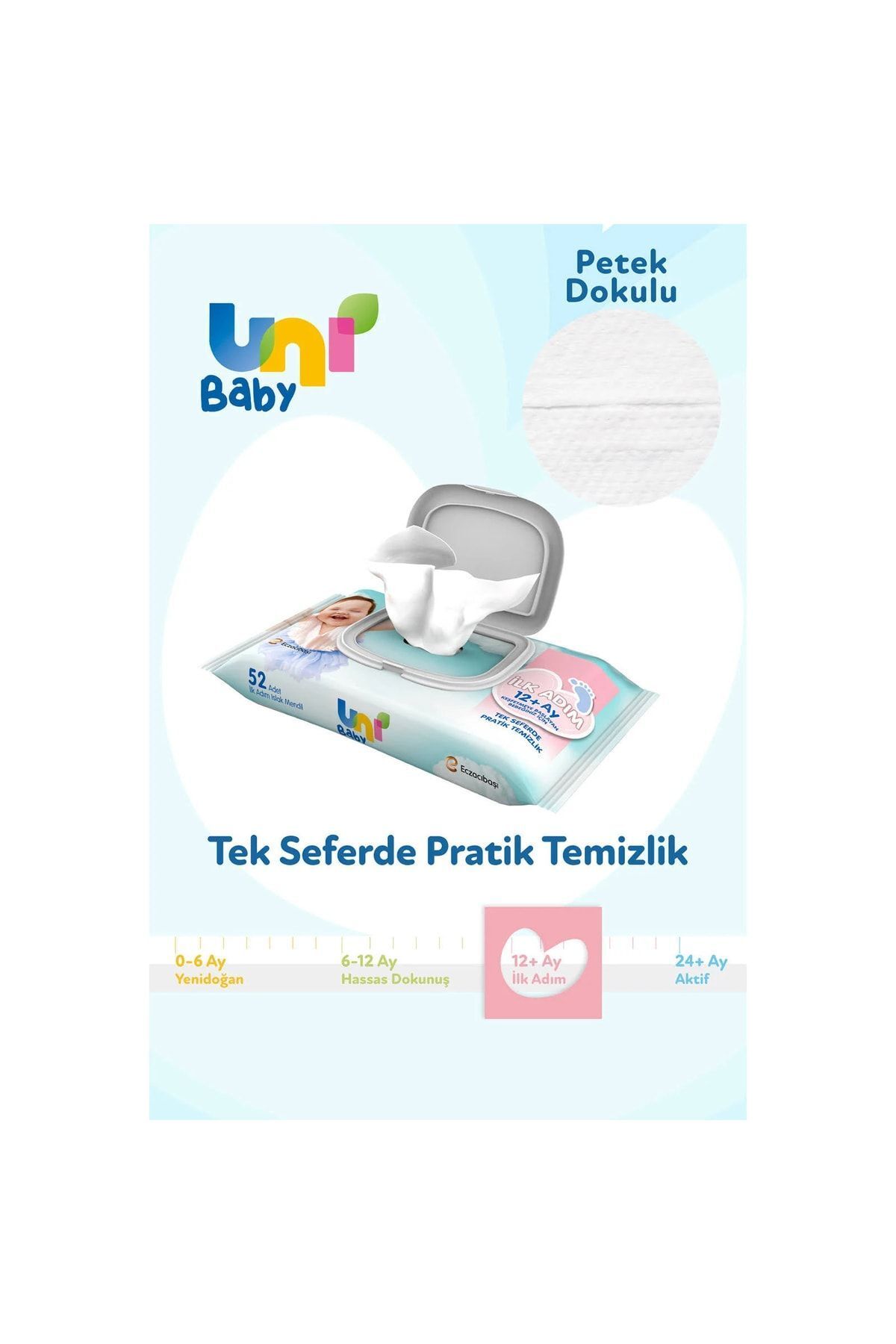 Baby Ilk Adım Islak Mendil 5’li 260 Yaprak El yüz ve bez bölgesi temizliği için uygundur.; ; Hipoalerjeniktir dermatolojik olarak test edilmiştir.; ; Alkol Paraben SLS SLES içerme ; Ürün bilgileri ; Uni Baby İlk Adım 52’li Islak Mendil Özellikleri Hassas Tenler İçin Islak Mendil Tek seferde pratik temizlik 12+ aylık dönemde ilk adımlarını atmaya başlayan bebeğinizin her fırsatta özgürce hareket etmek isteyecek, çevresinde gördüğü şeylere dokunmaya başlayacaktır.; Hareketlenen ve çevresini keşfetmeye başlayan bebeklere özel geliştirilmiş yumuşak petek dokulu Uni Baby İlk Adım Islak Mendil, bebeğinizin cildinde tek seferde pratik temizlik sağlar.; Size de bebeğinizle oynamak ve keşfetmek kalır.; El, yüz, bez bölgesi temizliği için uygundur.; pH değeri bebeğinizin cildiyle uyumludur.; Islak Mendil Dermatolojik olarak test edilmiştir.; İlk Adım 52’li Islak Mendil İçerik ve Teknik Özellikleri Özel olarak geliştirilmiş formülü ve yumuşak dokusu sayesinde etkili temizlik sağlar.; Evde, arabada, parkta, işyerinizde ihtiyacınız olan her yerde kullanıma uygundur.; Özel tasarımı sayesinde her an yanınızda taşıyabilir, ihtiyacınız olan anlarda kullanım sağlayabilirsiniz.; Islak Mendil pH değeri cilt ile uyumludur.; Alkol ve paraben içermez.; Formülasyonu dermatolojik olarak test edilmiştir