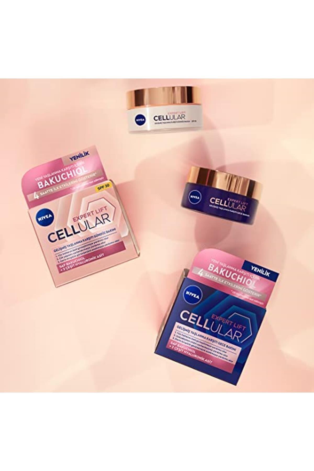 NIVEA Cellular Expert Lift Gelişmiş Yaşlanma Karşıtı Gece Kremi yaşlanma karşıtı formülümüyle daha genç görünen cildi ortaya çıkartmak için yaşlanma karşıtı içeriklerin bir kombinasyonunu içerir ; Yüz hatlarını belirginleştirmeye ve uykudayken cildin canlanmasına yardımcı olur ; Hyaluronik asit sayesinde cildi nemlendirir ve kırışıklık görünümünü azaltmaya yardımcı olur ; İçeriğindeki saf bakuchiol kullanımdan 4 saat sonra yaşlanma karşıtı etkilerini göstermeye başlar, cildin canlanmasına yardımcı olur ve destek liflerini güçlendirir ; Gece boyunca cildin doğal sürecini destekleyerek cilde canlı ve dinlenmiş bir görünüm sağlamaya yardımcı olur ; Cilitle uyumu dermatolojik olarak kanıtlanmıştır ; Marka NIVEA Koku Fragrance (parfum) Ürün Formu Krem Aktif Bileşenler Hiyalüronik Asit Birim Sayısı 50 ml
