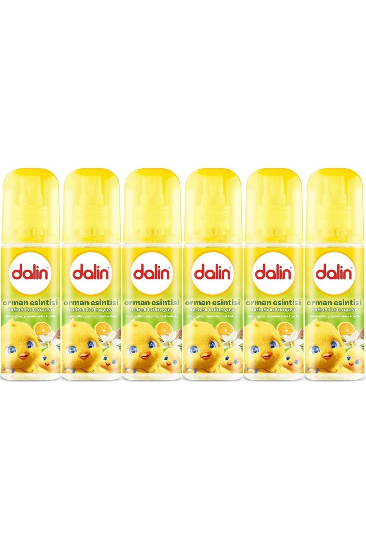 Dalin Bebek Kolonyası 150ML Orman Esintisi (Vanilya-İris Çiçeği-Portakal Kokulu) (6 Lı Set) Dalin kolonya ile ferahlık gün boyu yanınızda! İçeriğindeki beyaz vanilya, iris çiçeği ve portakal birleşimi ile eşsiz bir kokuya sahiptir. ; Kalıcı tazelik ve ferahlık verir, böylece mis kokulu Dalin ile temizliğin keyfini tüm gün çıkarabilirsiniz. ; Özel formülü hem sizin hem bebeğiniz için idealdir. ; Dalin Bebek Kolonyaları ile ferahlığın keyfini her an yanınızda taşıyabilirsiniz Ürün Kullanımı İhtiyacınız olan miktarı avucunuza püskürterek hem bebeğinizin cildine hem de kendi cildinize nazikçe uygulayın. ; Yenidoğandan itibaren bebeğinizin hassas cildi için güvenlidir. ; Tüm aile bireyleri tarafından kullanılabilir.;