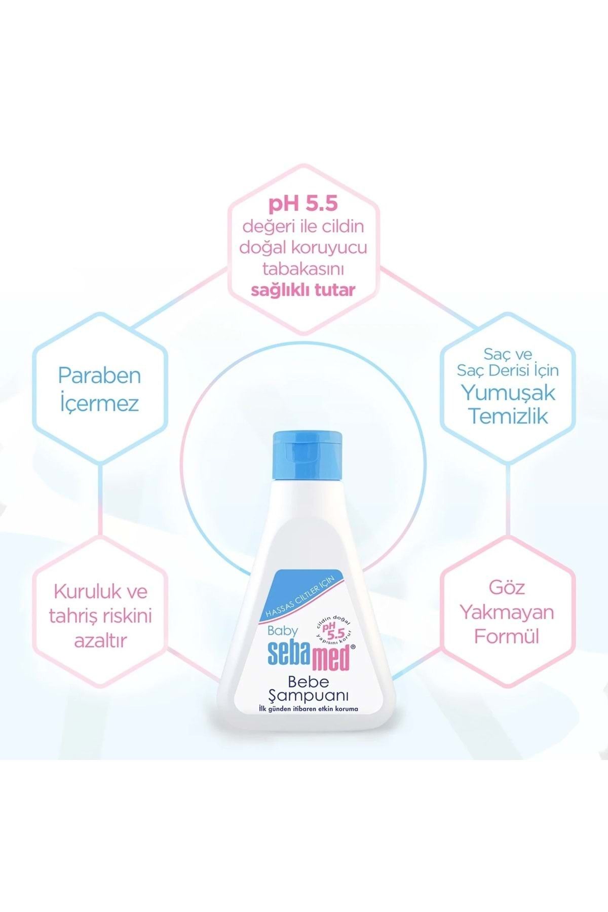 Sebamed Bebek Şampuanı 250ML (6 Lı Set) İlk günden itibaren etkin koruma sağlar. Saç ve saç derisi için yumuşak temizlik sağlar. Nemlendirici içeriği sayesinde kuruluğa karşı korur. pH 5.5 cildin doğal yapısını korur. Gözleri yakmaz fakat şampuanın direk gözle temasından kaçının, gözle temas durumunda derhal bol suyla durulayın. Kullanım Şekli: Avuç içinize bir miktar şampuan alın. Bebeğinizin kafasına dikkatlice sürün. Sonra iyice durulayın. Bebeğin saç ve saç derisini yumuşak bir şekilde temizler, konağı önler. Herhangi bir yan etkisi yoktur. Hacim: 250 ml Paraben içermez. Hassas ciltler için Sebamed Bebek Şampuanı 250 ml Üretim Yeri: Almanya Kullanım Durumları: Bebeğin, saç ve saçlı derisinin temizliğinde kullanılır. Ph 5,5 sayesinde cildin koruyucu asit mantosunun gelişmesine yardımcı olur Derideki tahrişleri giderir, cildi kurutmaz, iritasyon yapmaz, gözleri yakmaz. Mikrobiyolojik kontrolden geçirilmiştir. İsteğe bağlı olarak, her gün ya da gün aşırı kullanılır. Yetişkinler de kullanabilir.