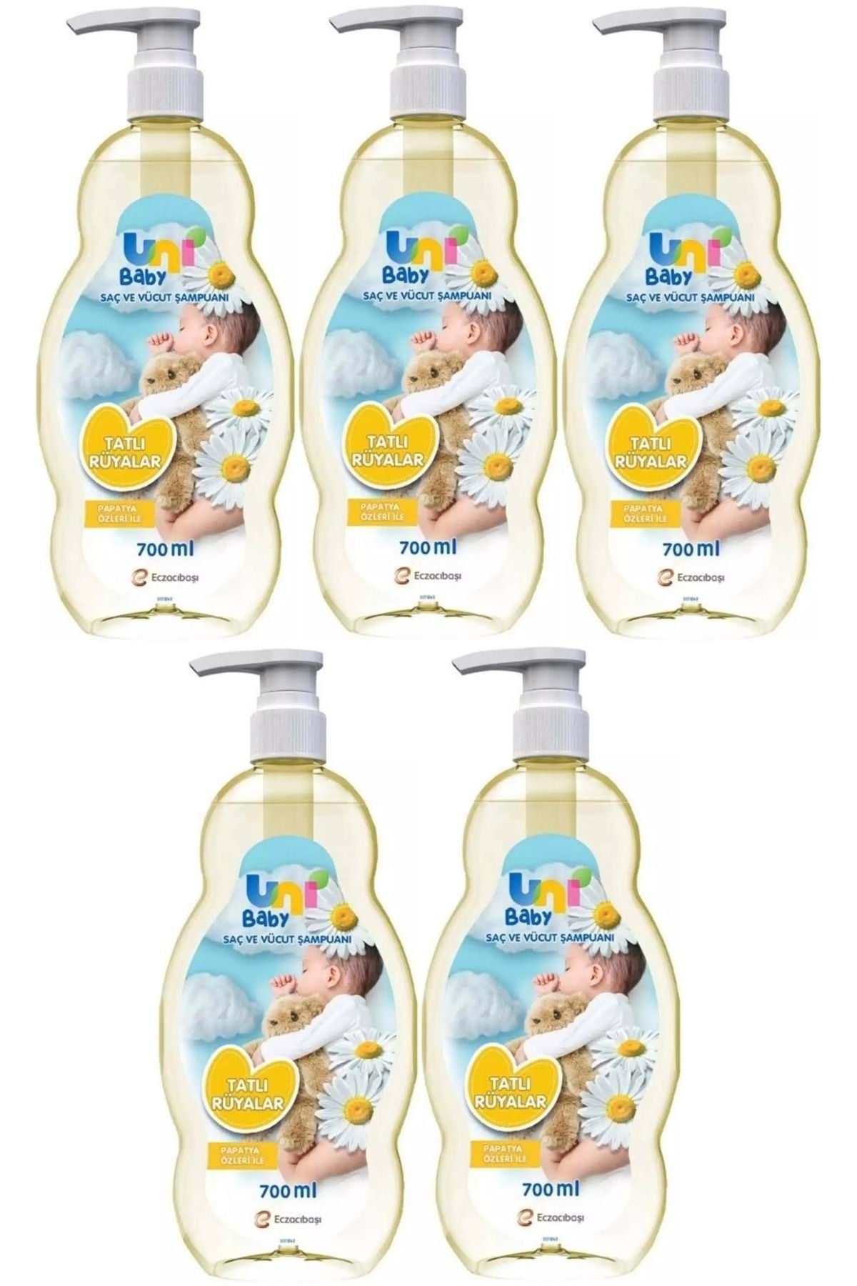 Uni Baby Bebek Şampuanı 700ML Tatlı Rüyalar (Pompalı) (5 Li Set) Nazik Temizlik Ve Nemlendirme İçin, Doğal Olarak Uni Baby ? Uni Baby Saç Ve Vucüt Şampuanı İçerdiği Doğal Kaynaklı&Nbsp;Bileşenler Ve Saf Su İle Bebeğinizin Hassas Saç Ve Cildini Nazikçe&Nbsp;Temizlerken, Ciltte %70’E Varan Nemlendirme Sağlar ? Cilde Uygunluğu Alman Dermatest Laboratuvarı Tarafından Klinik&Nbsp;Olarak Test Edilip, Onaylanmıştır. ? Göz Yakmaz. Pediatrist Ve Oftalmolog Eşliğinde, Uzun Süreli&Nbsp;Kullanım İle Test Edilmiştir. ? Dermatolojik Olarak Test Edilmiştir. ? Hipoalerjeniktir. Ph Değeri Cilt İle Uyumludur.