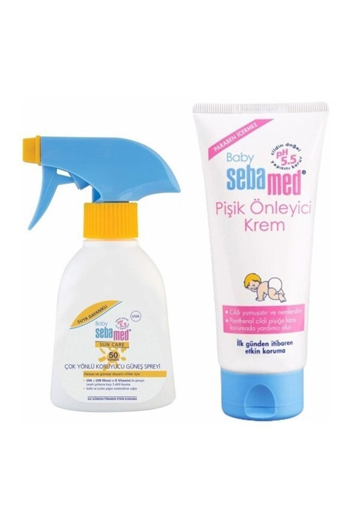 Sebamed Bebekler için Güneş Spreyi SPF 50 200 ml Sebamed Bebe Bez Bölgesi Bakım Kremi 50 ml Sebamed Bebekler için Güneş Spreyi SPF 50 200 ml Özet Bilgi: E Vitamini ve koruyucu Provitamin B5 ile cildi koruyan güneş spreyi. ; Ürün Faydaları: pH değeri 5.5’tir. ; Güvenilir UVA + UVB koruması. ; Yüksek düzeyde etkili UVA/UVB filtre sistemi ile cildi korur. ; Kuruluğa karşı korumak için yoğun nemlendirme sağlar. ; Yağ içermez. ; Suya ve kuma dayanıklıdır. ; Sadece SPF 50 versiyonu vardır. ; SPF testi yapılmış ve COLIPA güneş koruma ürünleri önerilerine göre üretilmiştir. ; UVA koruması: %98 UVA emilimi (Avustralya Standardından daha yüksektir). ; Parfümlü veya parfümsüz. ; Alkol içermez. ; Parafin, parabenler, PEG bağları ve PABA esterleri, akrilamid içermez. ; Sebamed Baby Sun Sprey 50Spf, hassas bebek ve çocuk ciltleri için geliştirilen suya ve kuma dayanıklı güneş koruyucu spreydir. ; Uygun Cilt Tipi: Hassas Ciltler. ; Kullanım Şekli: Güneş koruma ürünlerini, güneşe çıkmadan 20 dakika önce kullanınız. ; Sebamed Baby Çok Yönlü Koruyucu Güneş Spreyinin, cilde eşit miktarda dağıtarak ve nazik bir şekilde masaj yaparak uygulayınız. ; Ürünü bol miktarda uygulayınız, az miktarda sürerseniz koruma etkisi azalacaktır. ; Özellikle terledikten, yüzdükten veya havluyla kurulandıktan sonra, korumanın devam etmesi için uygulamayı tekrarlayınız. ; Sebamed Bebe Bez Bölgesi Bakım Kremi 50 ml Özet Bilgi: Bebek bezi bölgesine ekstra hassas bakım ve koruma sağlar. ; Ürün Faydaları: Bebek bezi bölgesindeki ekstra hassas bakımı ve korumayı sağlamaya yardımcı olur. ; Allantion, Pantelon ve Bisabolol cilde yumuşaklık kazandırır. ; Cilde ferahlık kazandırır. ; Cildi güzel bir şekilde nemlendirerek besler. ; Pantenol içerir. ; 5.5’lik pH değerine sahiptir. ; Uygun Cilt Tipi: Normal Ciltler Kullanım Şekli: Temizlenmiş cilde ihtiyaç duyduğunuz an uygulayın.;