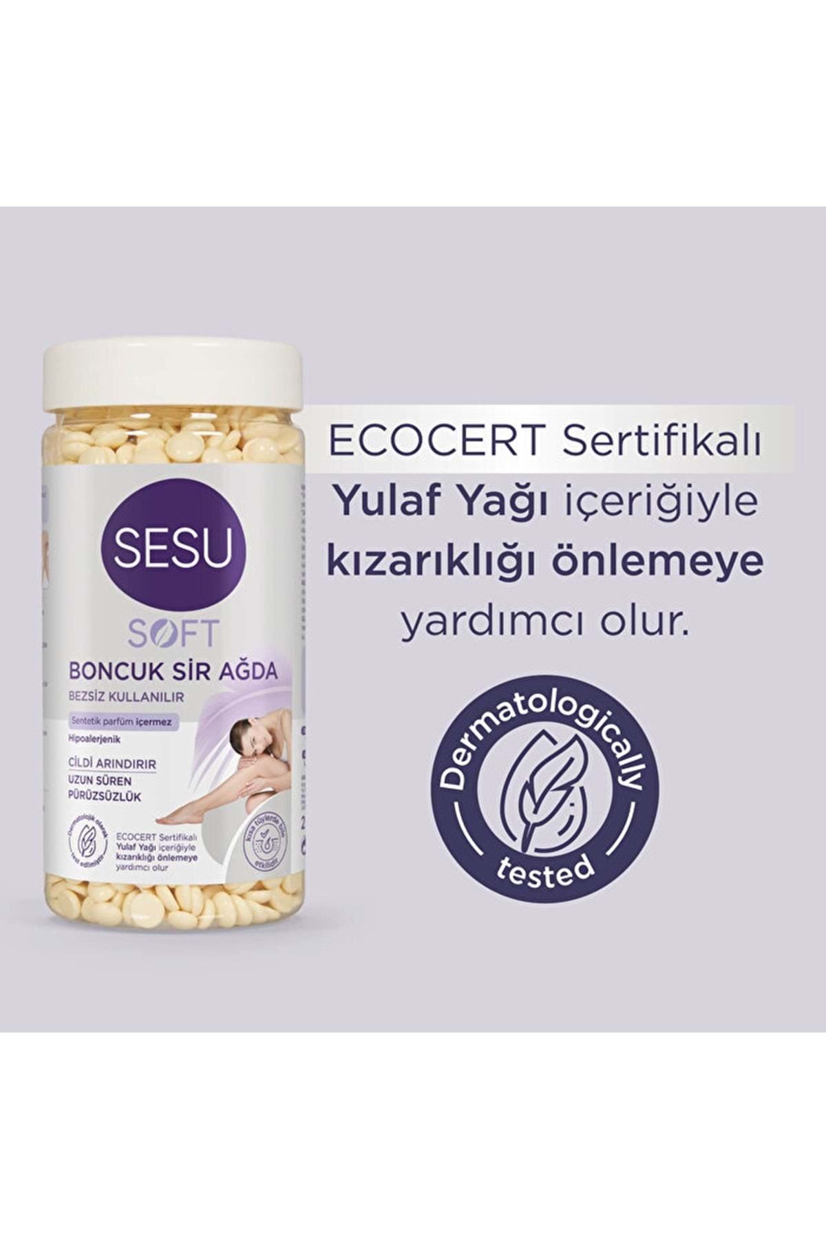 Sesu Boncuk Sir Ağda 250GR Soft (4 Lü Set) -Hipoalerjeniktir. -ECOCERT Sertifikalı Yulaf Yağı içeriği ile ciltteki kızarıklığı önlemeye yardımcı olur. -Uzun süren pürüzsüz bir cilt vadeder. -Ulaşılması zor kıvrımlı bölgeler için idealdir. -Dermatolojik olarak test edilmiştir. -Kısa tüylerde bile etkilidir. -Cildi arındırma etkisine sahiptir. -Bacak ve vücut bölgesi için kullanıma uygundur. -Bezsiz kullanılabilir. Nasıl Kullanılır; Sesu Boncuk Sir Ağda’yı istenilen miktarda sir ağda ısıtıcı makinede veya ısıtıcı bir cezvede tatmı eriyinceye kadar ısıt. Ağda sürülebilecek kıvama geldikten sonra kullanıma hazır demektir. Kullanmadan önce, ağda sıcaklığını ölçmek için uygulama yapacağın bölgeye az bir miktarda sürerek kontrol et. Sonra spatula yardımı ile tüylerin çıkış yönü doğrultusunda, çok ince bir tabaka halinde (1mm) ve eşit miktarda ağdayı sür. (Evinde spatula yoksa metal yemek bıçağın keskin olmayan tarafını kullanabilirsin.) Bir elinle cildini ger, diğer elinle köşesinden tutabilecek kadar ağdayı kaldır. Son olarak tek harekette tüylerin çıkış yönünün tersine doğru, cildine paralel olarak ağdayı çek. Ağda işlemini bitirdikten sonra cildini Sesu Sir Ağda Temizleme Mendili ya da Sesu Sir Ağda Temizleyici Bakım Yağı ile temizle. Maksimum pürüzsüzlüğü hisset!