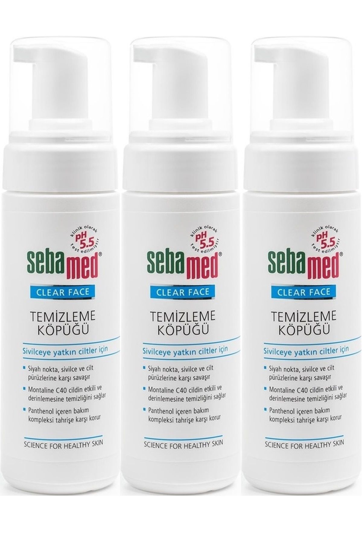 Sebamed Clear Face Yüz Temizleme Köpüğü 150ML (3 Lü Set) Ürün Faydaları: – Ciltteli sebumu, kiri ve yağı nazikçe arındırır. – İçeriğindeki hamamelis cildin görünümünü tazelemeye yardımcı olur. – İpek proteini ve allantoin cildi yumuşatır ve nemlendirir. – Cildin doğal pH5.5 değerini sağlar. – Cilt tarafından kolayca tolere edilir. Uygun Cilt Tipi: – Yağlı ve düzensiz ciltler. Kullanım Şekli: – Sebamed Clear Face Tonik, sabah temizliğinden sonra günde bir defa uygulanır. – Etkilenen cilt bölgesinin büyüklüğüne göre beş ila on damla makyaj pamuğu üzerine dökülerek cilde uygulanır. Ürün Bileşimi: – Aqua, Cocamidopropyl Betain-amide MEA Chloride, Cocotrimonium Metho-sulfate, Lactic Acid, Panthenol, Sodium Hydro-xide, Parfum, Phenoxyethanol.