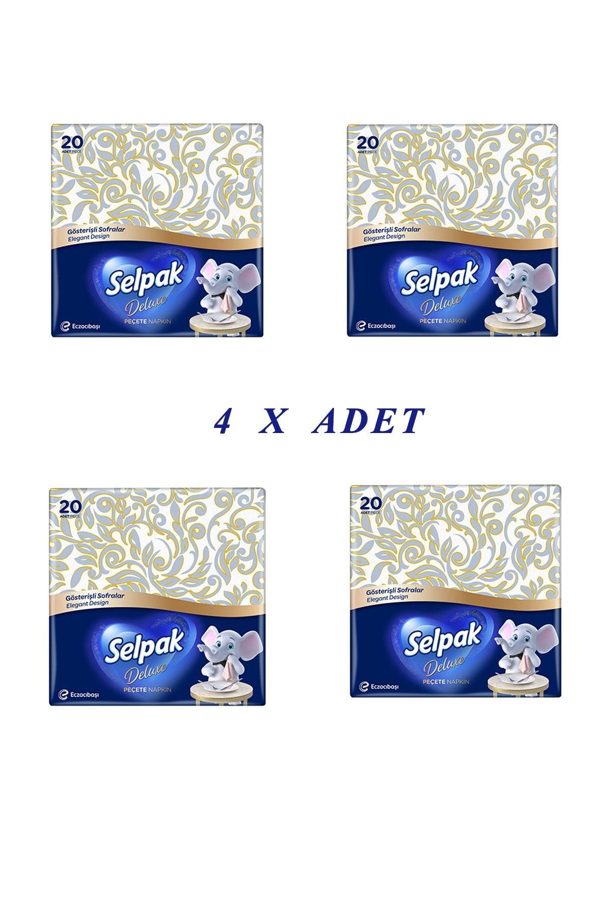 Selpak Deluxe Peçete 20’li- 4’lü Paket- YEŞİL ; 4 Adet gönderilecektir. ; 30×30 cm ; Selpak Deluxe Peçete fil kadar gösterişli! ; Selpak Deluxe Peçeteler, farklı zevklere uygun özel desenleriyle şık ve gösterişli sofralarınızın vazgeçilmezi! ;