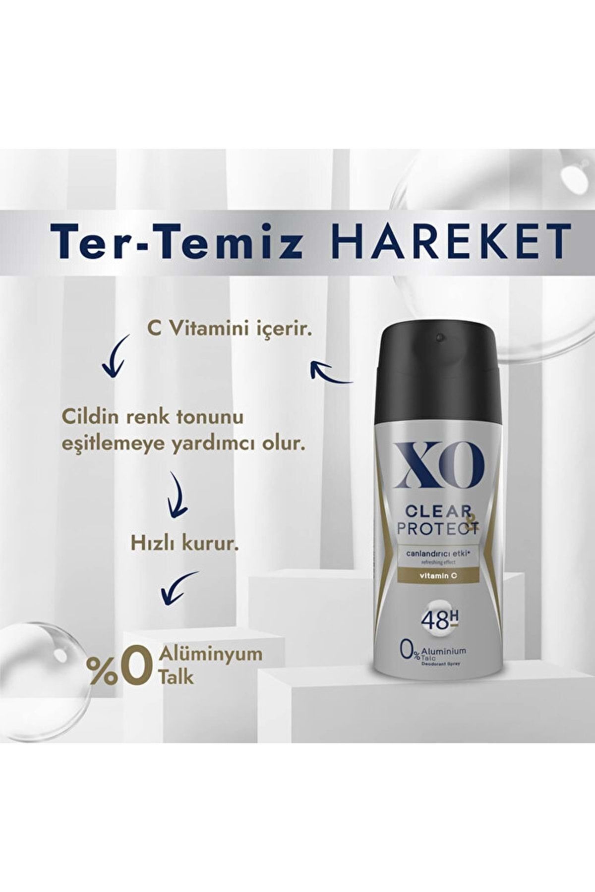 XO Deodorant 150ML Men-Erkek Clear & Protect (6 Lı Set) – İçeriğinde yer alan C vitamini ve doğal kaynaklı özler ile ciltte canlandırmayı sağlar. – Koltuk altında renk eşitliğine yardımcı olarak aydınlatıcı bir etki yaratır. – Cildin doğal nem dengesini beslemeye yardımcı olur. – Alüminyum ve pudra içermeyen özelliği ile kötü kokuyu maskeler, gözeneklerin tıkanmasını önler. – 48 saat etkin koruma sağlar. – Geri dönüştürülebilir ambalajı ile doğa dostudur. – Vegan formüle sahiptir.