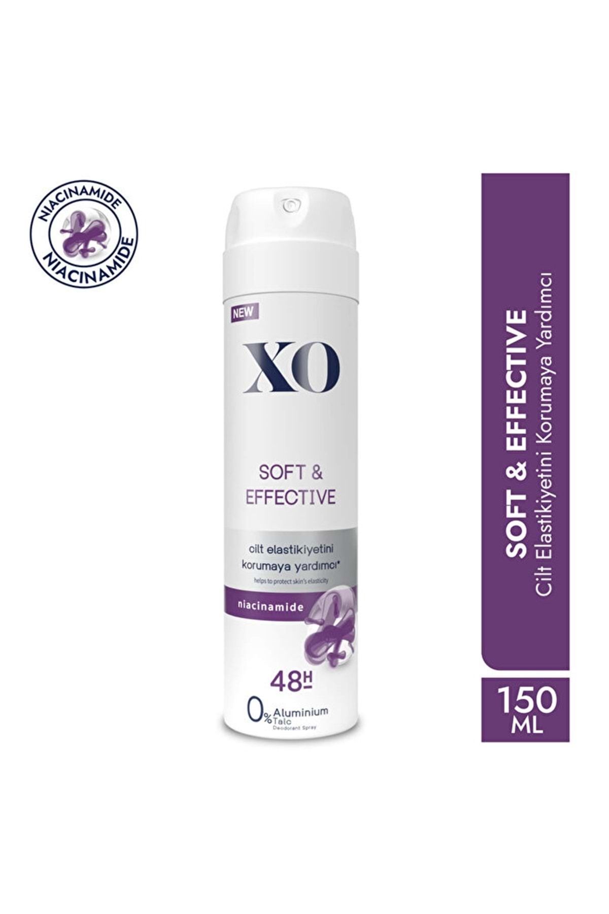 XO Deodorant 150ML Women; Kadın Soft & Effective (4 Lü Set); Niacinamide içerikli özel formülü ile cildin elastikiyetini korumasına yardımcı olur, cilde nefes aldırır; Alüminyum ve pudra içermeyen özelliği ile kötü kokuyu maskeler, gözeneklerin tıkanmasını önler; 48 saat etkin koruma sağlar; Geri dönüştürülebilir ambalajı ile doğa dostudur; Vegan formüle sahiptir;