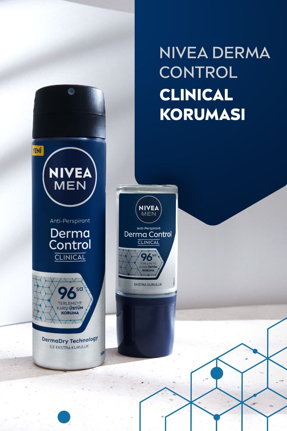 Türkiye’nin Lider Deodorant Markası NIVEA’dan :NIVEA Derma Control Clinical Erkek Roll-on 50 ml NIVEA’nın en güçlü anti-perspirant roll-on’u,Terlemeye ve ter kokusuna karşı klinik olarak kanıtlanmış koruma sunar,cildinizi korur. ; Terlemeye karşı 96 saat üstün koruma sağlar ; Yeni DermaDryTeknolojisi® sayesinde cildi tahriş etmeden yumuşak bir his bırakır ve ekstra kuruluk sağlar. ; Kullanım:Temiz koltuk altınıza uygulayınız.Tahriş olmuş cilde uygulamayınız,ürünün tamamen kurumasını bekleyiniz. ; Kişisel bakım rutininizin vazgeçilmezi! ; Almanya’da üretilmiştir ; NIVEA Bakım Güvencemiz: EN yüksek kalite standartlarına sahip içerikleri seçiyoruz. ; NIVEA Men Derma Control Clinical Serisi 2 farklı ürün formatı sunar:Sprey Deodorant 150 ml ve Roll-on 50 ml ; Ürün kutusu ile birlikte gönderilmektedir. ;