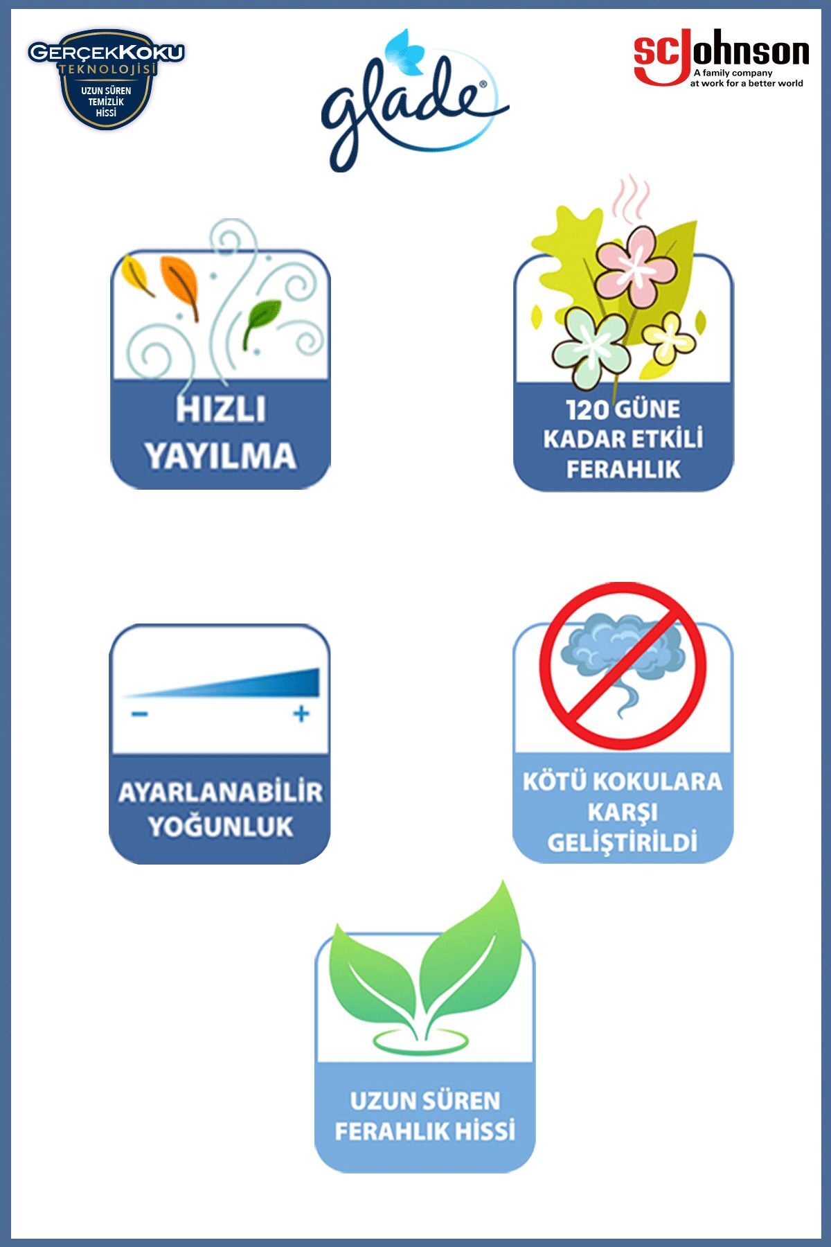 🌿 Tertemiz Çarşaf Kokusu ile Evinizde Ferahlatıcı Hava! 🌿 Bu Glade hava tazeleyici seti, yeni yıkanmış çarşafların temiz ve ferah kokusunu evinizin her alanına taşır.; Elektrikli oda kokusu makinesi, uzun süre kalıcı koku yayarak evinizin havasını taze tutarken, banyo hava tazeleyici cihazı küçük alanlarda hoş olmayan kokuları giderir ve uzun süre ferahlık sağlar.; 🛏️ Temiz Çarşaf Ferahlığı kokusu, gün boyu yeni yıkanmış çamaşırların tazeliğini hissetmenize yardımcı olur.; 💨 Uzun Süre Kalıcı Koku, 100 güne kadar etkili formülüyle mekanlarınıza sürekli ferahlık yayar.; 💨 Gelişmiş Koku Teknolojisi ile Dengeli ve Etkili Koku Yayılımı:🔹 Elektrikli oda kokusu difüzörü, geniş alanlarda hızlı ve dengeli koku yayılımı sağlar.; 🔹 Banyo hava tazeleyici cihazı, küçük alanlarda etkili ve kalıcı kokulandırma sunarak kötü kokuları absorbe eder.; 🔹 Ayarlanabilir koku seviyesi, kokunun yoğunluğunu ihtiyacınıza göre belirlemenize olanak tanır.; 📌 Kullanımı Kolay & Pratik:✔ Oda kokusu makinesini prizine takın, kokuyu yerleştirin ve anında temiz ve ferah bir ortamın keyfini çıkarın.; ✔ Banyo hava tazeleyici, banyolar ve küçük alanlar için özel olarak tasarlanmış olup ferahlatıcı koku teknolojisi sunar.; ✔ Yedek kokular, temiz çarşaf kokusunu evinizin her köşesinde daha uzun süre yaşamanıza yardımcı olur.; 🏡 Nerelerde Kullanabilirsiniz?✔ Salon, yatak odası, banyo, antre, ofis veya küçük alanlarda etkili koku yayılımı sağlar.; ✔ Kapalı mekanlarda hoş bir atmosfer oluşturarak uzun süreli tazelik hissi sunar.; 🛏️ Temiz çarşaf ferahlığını ve uzun süreli tazeliği evinizin her alanına taşıyın!🛒 Şimdi satın alın, temiz ve ferah bir ortamın keyfini çıkarın! 🎉