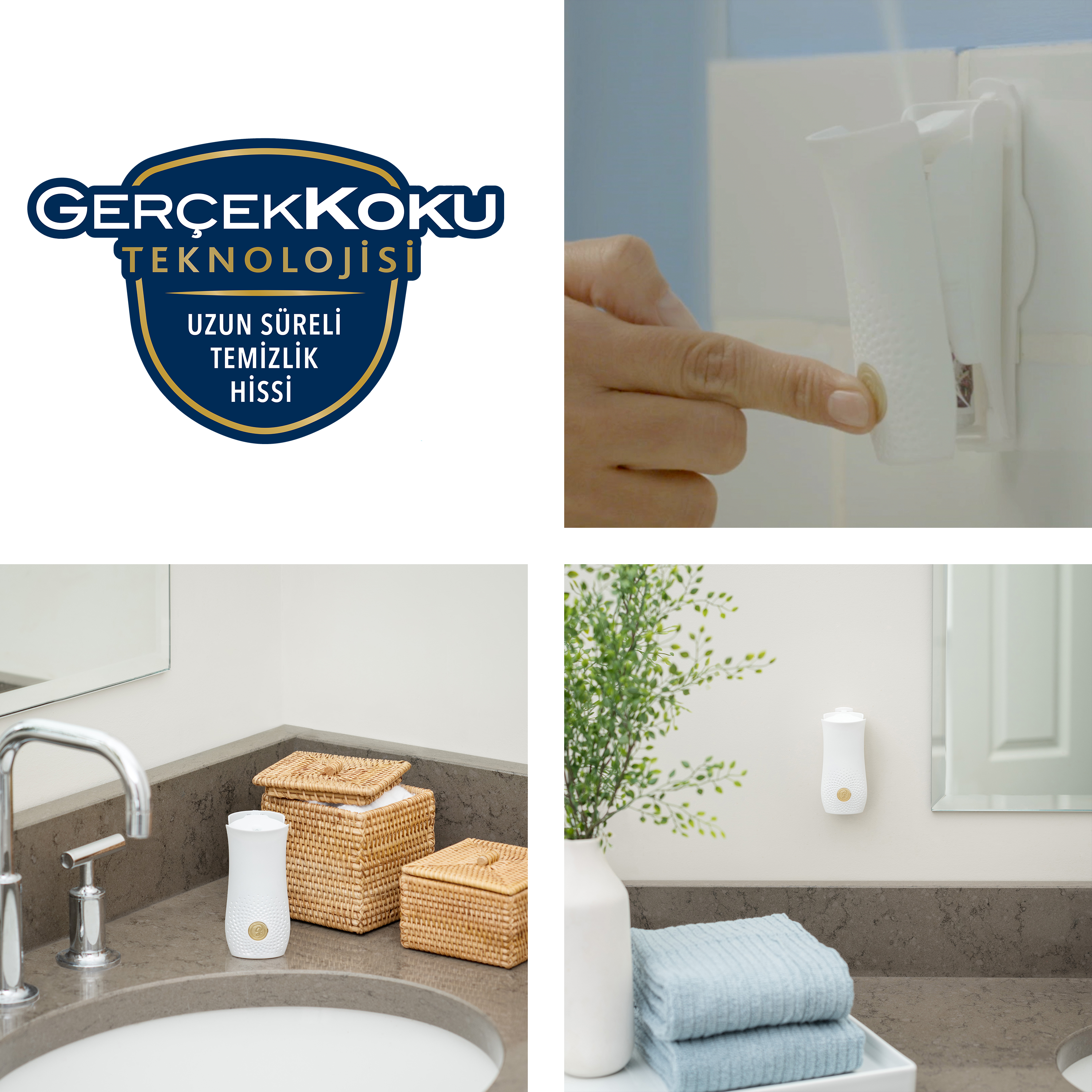 Banyo hava tazeleyici cihazı, küçük alanlarda güçlü ve dengeli bir koku yayılımı sağlayarak hoş olmayan kokuları nötralize eder.