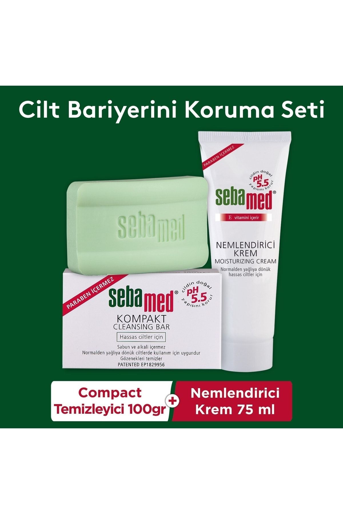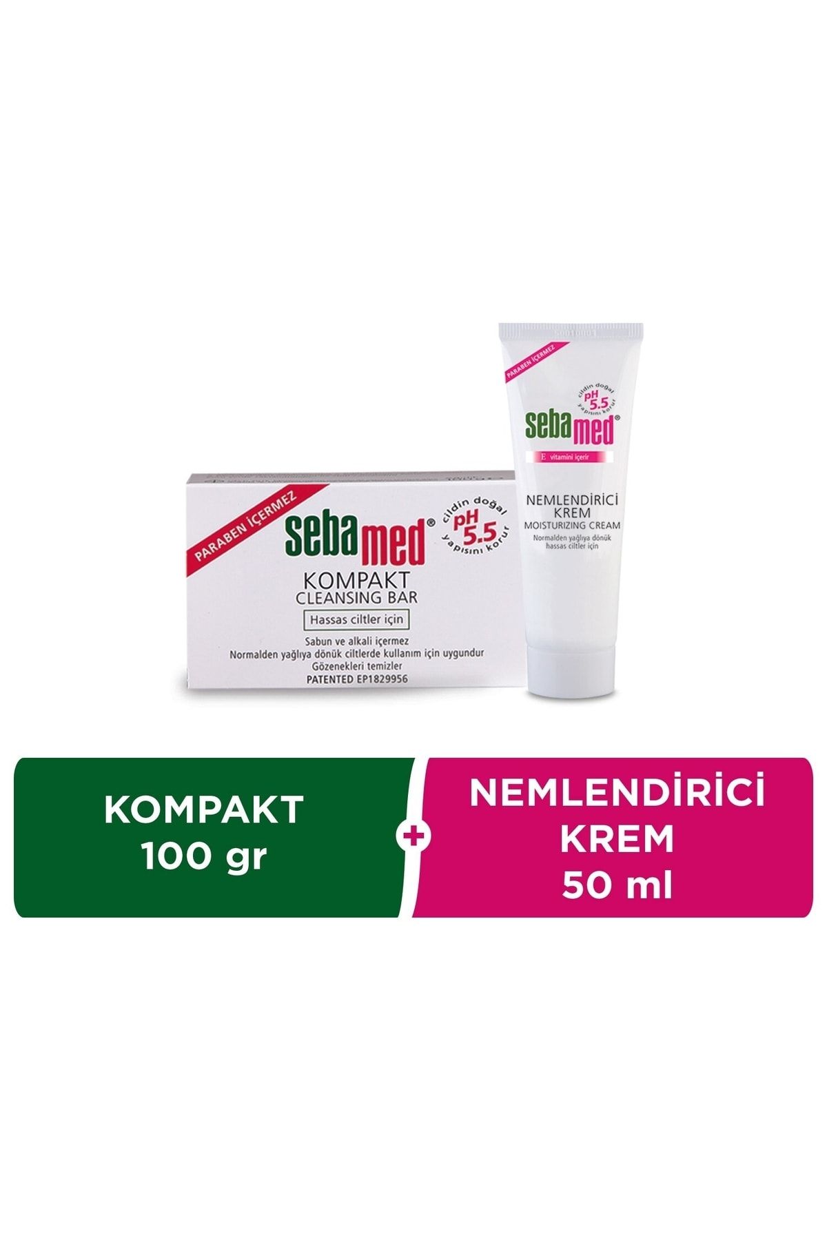 Sebamed Kompakt 100 gr normalden yağlıya dönük ciltlerde kullanım için uygundur. ; * Gözenekleri temizler. ; * Sebamed Nemlendirici Krem 50 ml normalden yağlıya dönük hassas ciltler için 24 saat boyunca nemlendiren bakım sağlar. ; * Cildin nem dengesini korur. ; * E vitamini içerir. ; * Cildi yumuşatır. ; * pH 5.5 değeri ile cildin doğal koruyucu tabakasını sağlıklı tutar. ; * Hızlıca emilir.;
