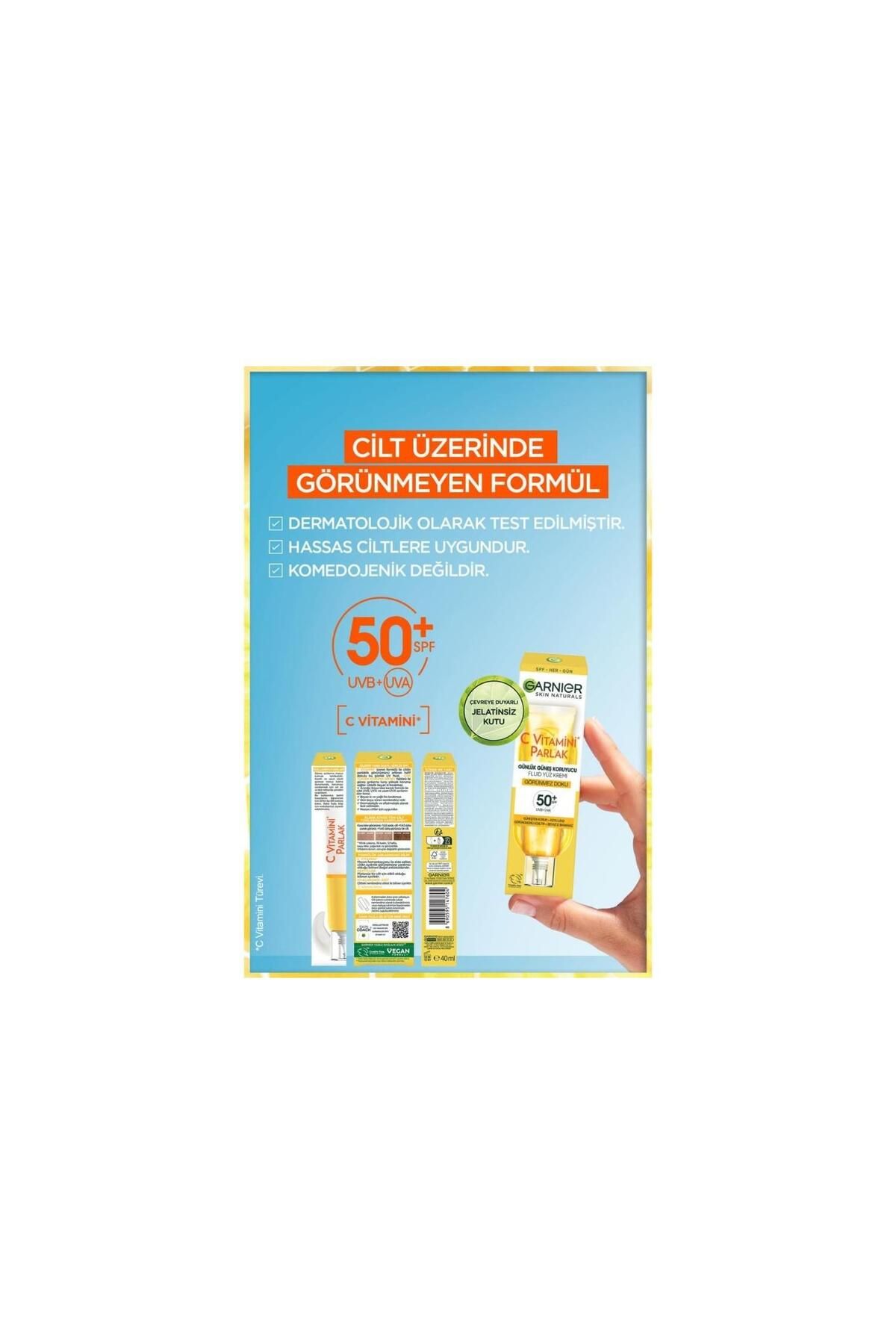 C Vitamini parlak günlük güneş koruyucu fluid yüz kremi.