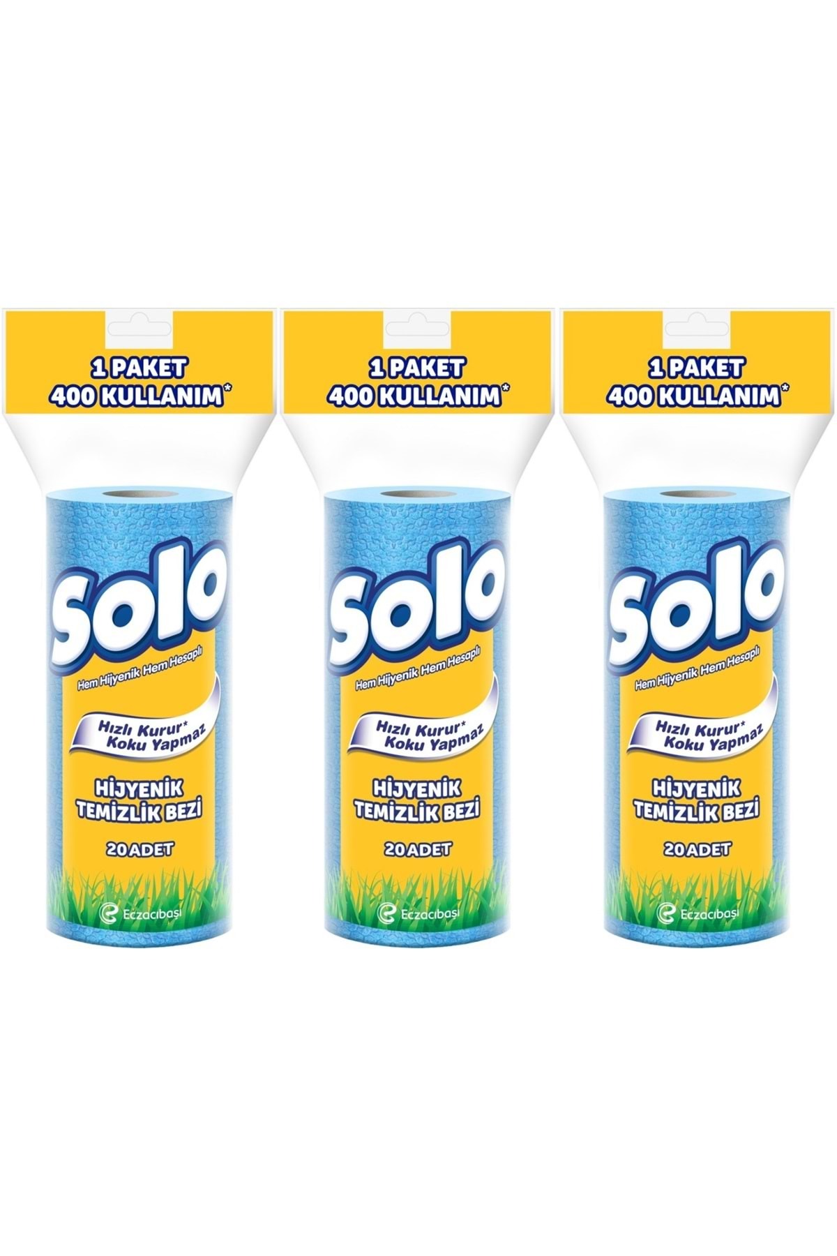 Solo Hijyenik Temizlik Bezi (İç adet 20 Li) (Kokusuz ve Hızla Kuruyan) (3 Lü Set) Solo Kağıt Bez 20’li Hijyenik Temizlik Bezi, günlük temizlik ihtiyaçlarınızı karşılarken, pratik ve etkili bir yardımcıdır.; Her paketteki 20 adet kağıt bez, evinizin her köşesinde kullanıma uygundur.; Bu düz yapısıyla, basit ama etkili temizlik çözümleri sunar.; Kendi alanında öne çıkan Solo Kağıt Bez sayesinde, temizlik işlemlerinizi kolaylaştırabilir ve işlerinizi hızlandırabilirsiniz.; Düz ve dayanıklı yapısı, farklı yüzeylerde rahatça kullanılmasını sağlar.; Yüksek emicilik kapasitesiyle, sıvıların ve kırıntıların hızlı bir şekilde temizlenmesine yardımcı olur.; Temizlikte pratiklik arayanlar için ideal bir tercihtir.; Kullanıma hazır, pratik ve dayanıklı bir yapı sunar.; Her pakette toplam 20 adet bulunmaktadır, uzun süre kullanma imkanı sağlar.; Düz yapısı sayesinde her yüzeyde etkili temizlik sağlar.