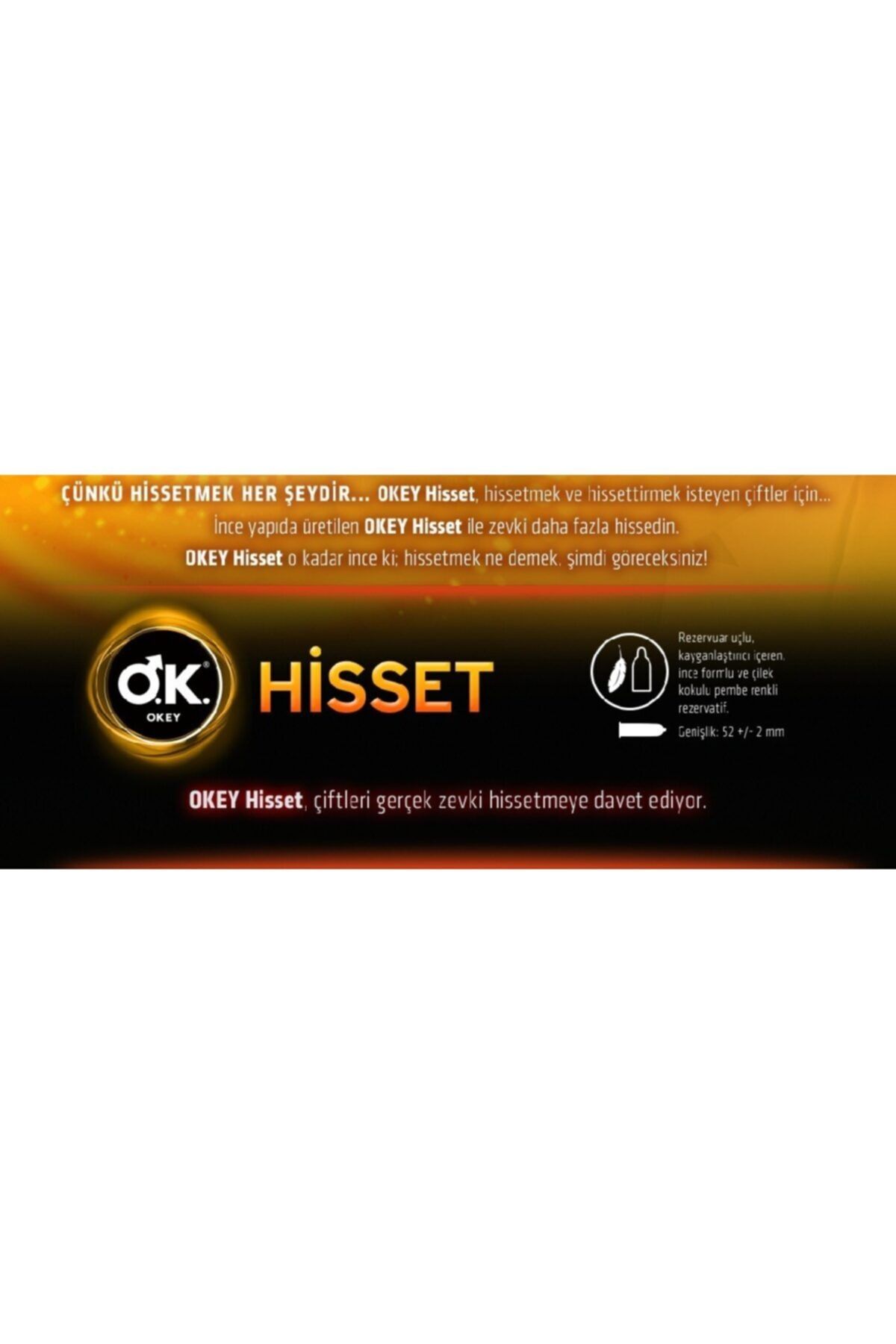 Okey Prezervatif Hisset 3’lü (30 Adet) **Gizli Gönderim** OKEY Hisset prezervatif hissetmek ve hissettirmek isteyen çiftler için özel olarak geliştirildi. Pembe renkli, çilek aromalı, düz yüzeyli, nominal genişliği 52 mm, paralel şekilli, rezervuar uçlu, silikon kayganlaştırıcılı, lateks prezervatifler.