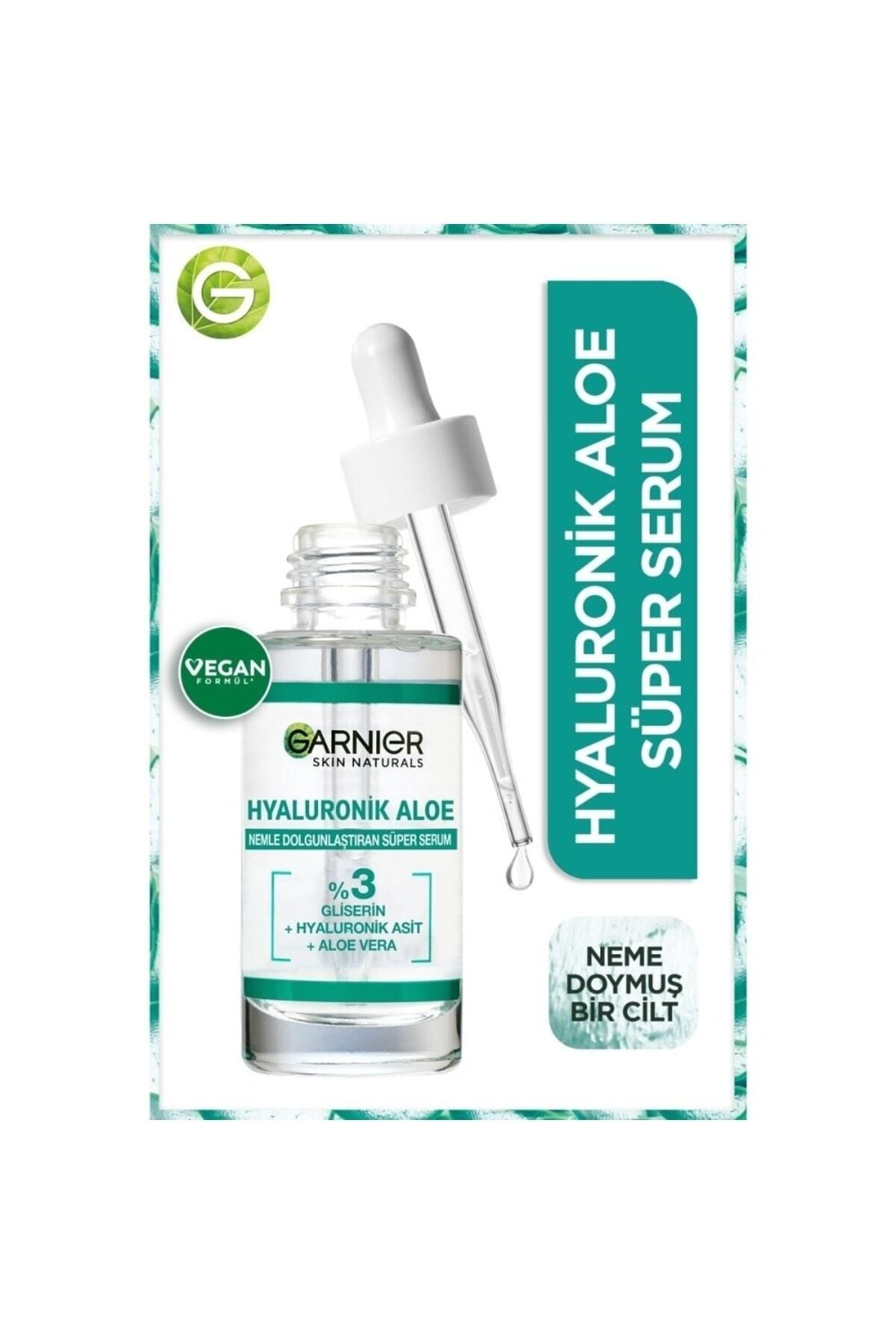Garnier’nin (%3) Gliserin + Hyaluronik Asit + Aloe Vera ile yüksek konsantrasyona sahip ilk serumu. ; Tek kullanımda daha pürüzsüz, yumuşak ve sıkı görünen bir cilt! KANITLANMIŞ ETKİNLİK Tek Kullanımda: Neme doymuş ve daha yumuşak bir cilt. ; NASIL KULLANILIR? Serum damlalığının aldığı kadar serumu temiz yüzünüze ve göz çevrenize nazikçe yayarak uygulayın. ; Her sabah ve akşam temiz cildinize gündüz veya gece kreminizden önce uygulayınız. ; Nemle Dolgunlaştıran Süper Serum. ; TÜM CİLT TİPLERİNE UYGUN %3 Gliserin + Hyaluronik Asit + Aloe Vera ile Zenginleştirilmiş Formül.;