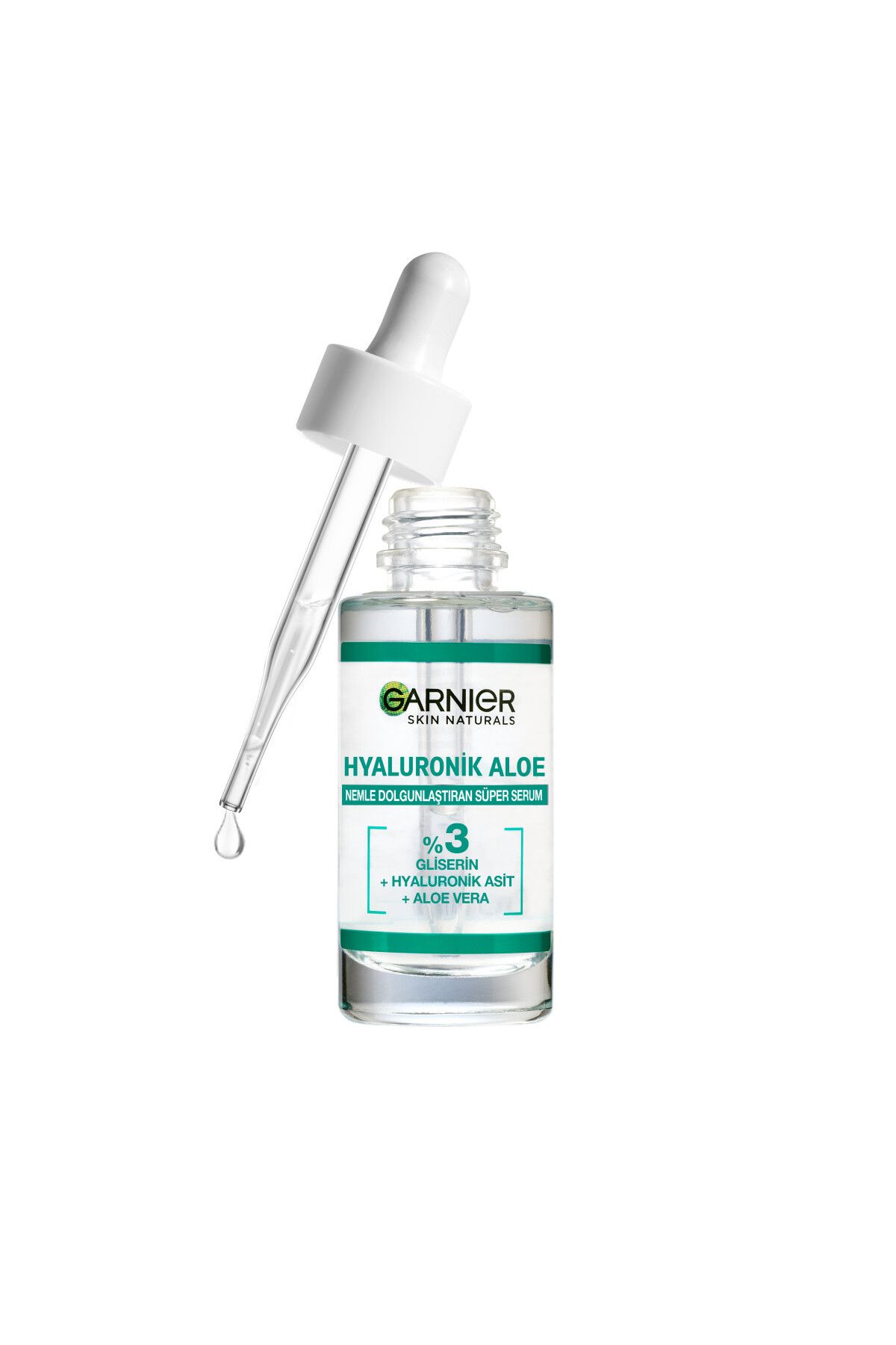 Garnier’nin (%3) Gliserin + Hyaluronik Asit + Aloe Vera ile yüksek konsantrasyona sahip ilk serumu. ; Tek kullanımda daha pürüzsüz, yumuşak ve sıkı görünen bir cilt! KANITLANMIŞ ETKİNLİK Tek Kullanımda: Neme doymuş ve daha yumuşak bir cilt. ; NASIL KULLANILIR? Serum damlalığının aldığı kadar serumu temiz yüzünüze ve göz çevrenize nazikçe yayarak uygulayın. ; Her sabah ve akşam temiz cildinize gündüz veya gece kreminizden önce uygulayınız. ; Nemle Dolgunlaştıran Süper Serum. ; TÜM CİLT TİPLERİNE UYGUN %3 Gliserin + Hyaluronik Asit + Aloe Vera ile Zenginleştirilmiş Formül.;