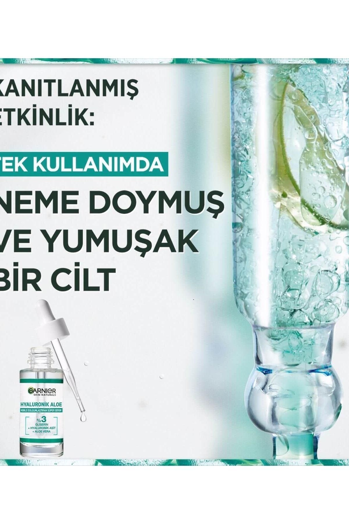 • Garnier’nin Gliserin + Hyaluronik Asit + Aloe Vera ile yüksek konsantrasyona sahip ilk serumu. • Tek kullanımda daha pürüzsüz, yumuşak ve sıkı görünen bir cilt! • KANITLANMIŞ ETKİNLİK: • Tek Kullanımda: Neme Doymuş ve Daha Yumuşak Bir Cilt