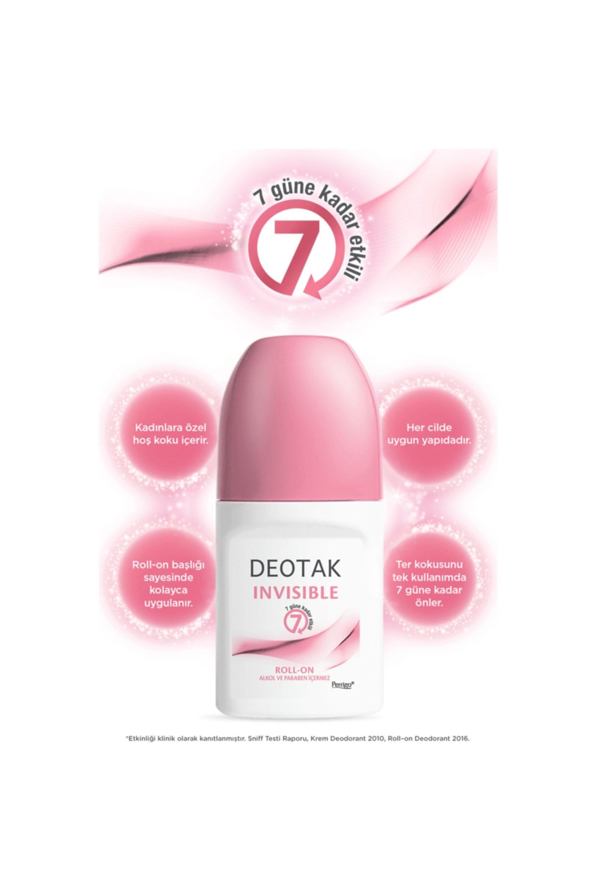 Deotak ınvisible roll on 35 ml x 4 adet . ; Deotak ınvisible roll-On deodorant 35 ml ürün özellikleri deotak ınvisible roll-On deodorant , terlemeye karşı etkili formülü ile kokuyu önler ve gün boyu ferahlık sunar. Giysilerde iz yapmayan formülü ile rahatlıkla koltuk altlarınıza uygulayıp, kurumasını beklemeden giyinebilirsiniz. Duş sonrasında uygulayarak ferahlık etkisini daha kalıcı kılabilirsiniz . ; Her zaman kendini daha ıyi hissetirir . ; Deotak marka kalitesi . ;