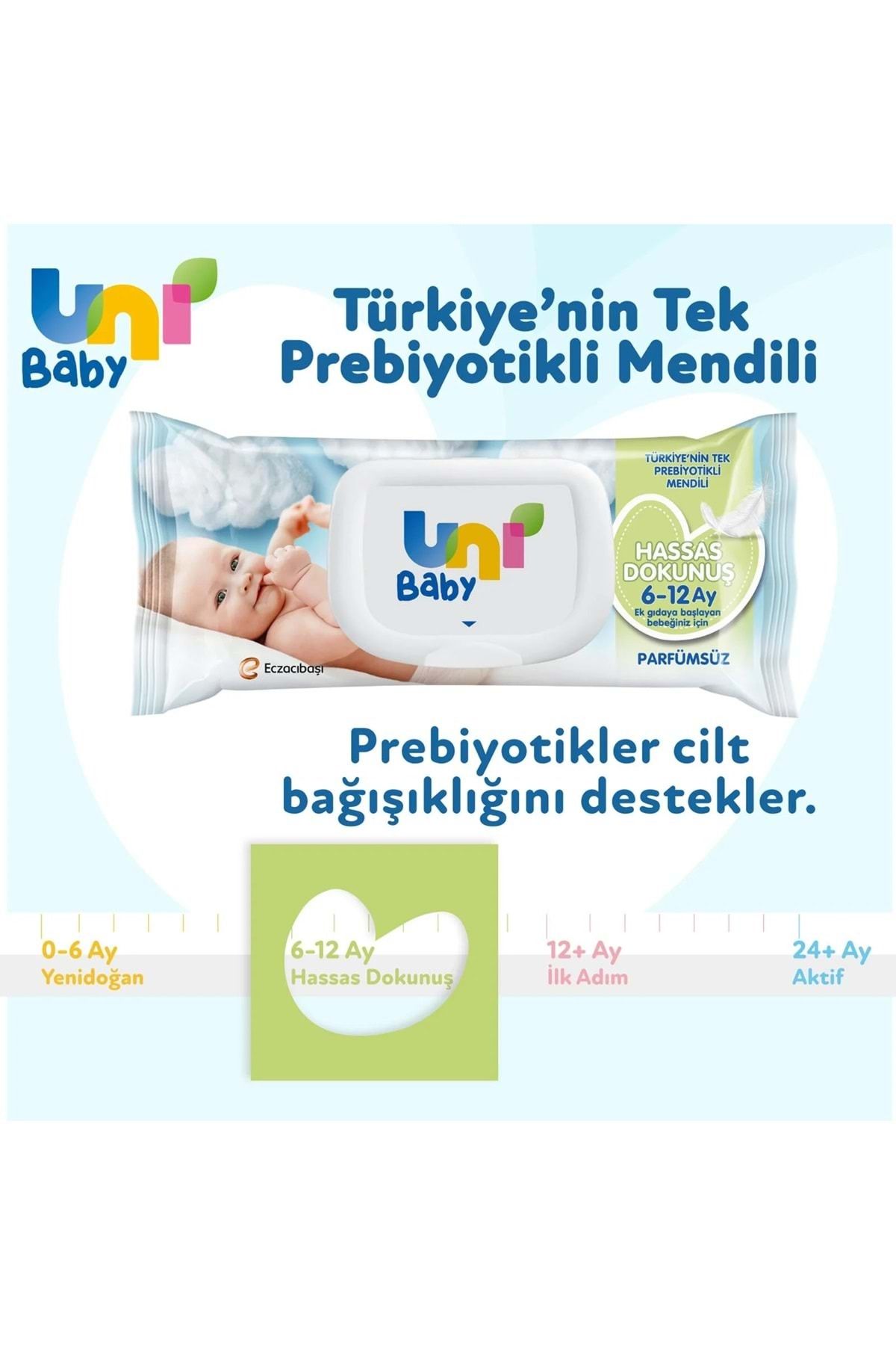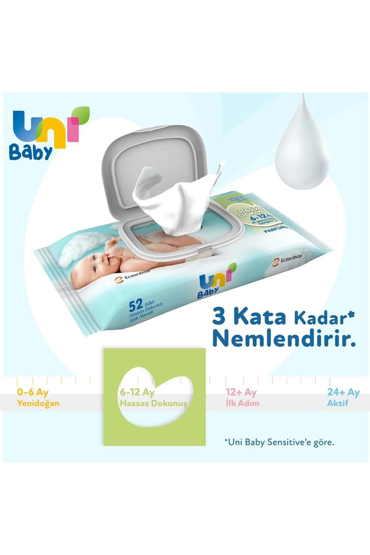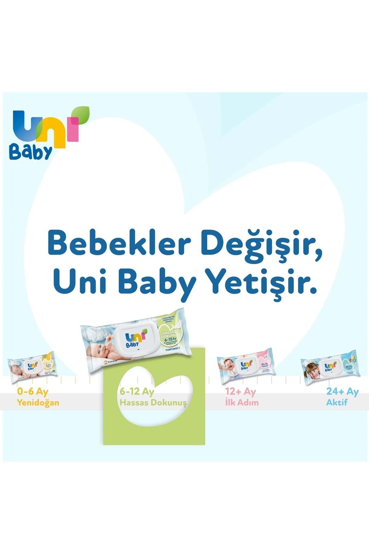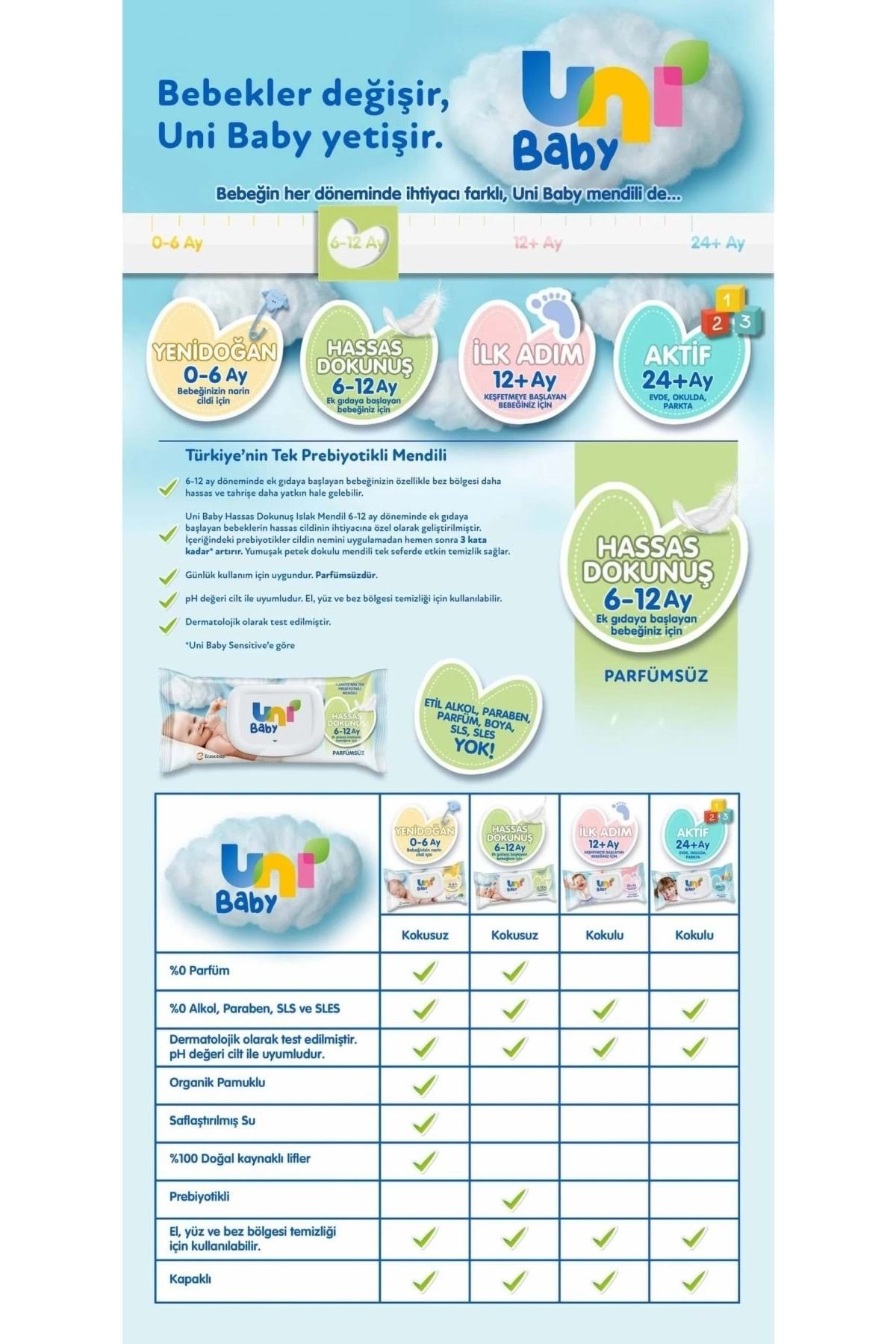 Uni Baby hassas dokunuş ıslak mendili 6-12 ay döneminde ek gıdaya başlayan bebeklerin hassas cildini ihtiyacına özel olarak geliştirilmiştir.