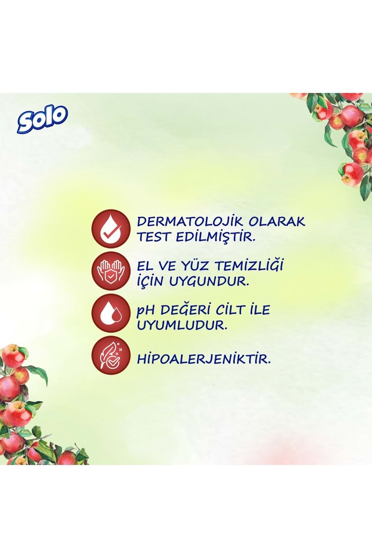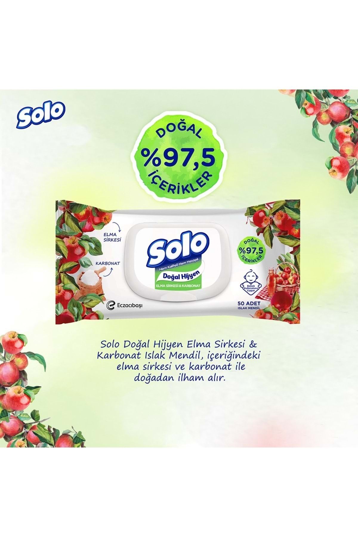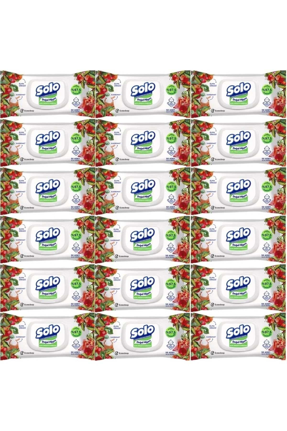Solo Islak Havlu Mendil 50 Yaprak Elma Sirkesi & Karbonat (18 Li Set) (6PK*3) 900 Yaprak Solo Islak Havlu Mendil, doğal elma sirkesi ve karbonat içeriğiyle güçlü temizlik sağlarken, cildinize nazik bir bakım sunar. Ferahlatıcı etkisiyle günlük hijyeninizi destekler ve pratik kapaklı ambalajı sayesinde uzun süre nemini korur. – Elma sirkesi ve karbonat ile doğal temizlik – Cilt dostu, nazik ve etkili formül – 50 yaprak ile uzun süre kullanım – El, yüz ve vücut temizliği için uygundur – Pratik kapaklı ambalaj ile hijyenik kullanım Günlük hijyen ve ferahlık için Solo Elma Sirkesi & Karbonat Islak Havlu Mendil her an yanınızda!