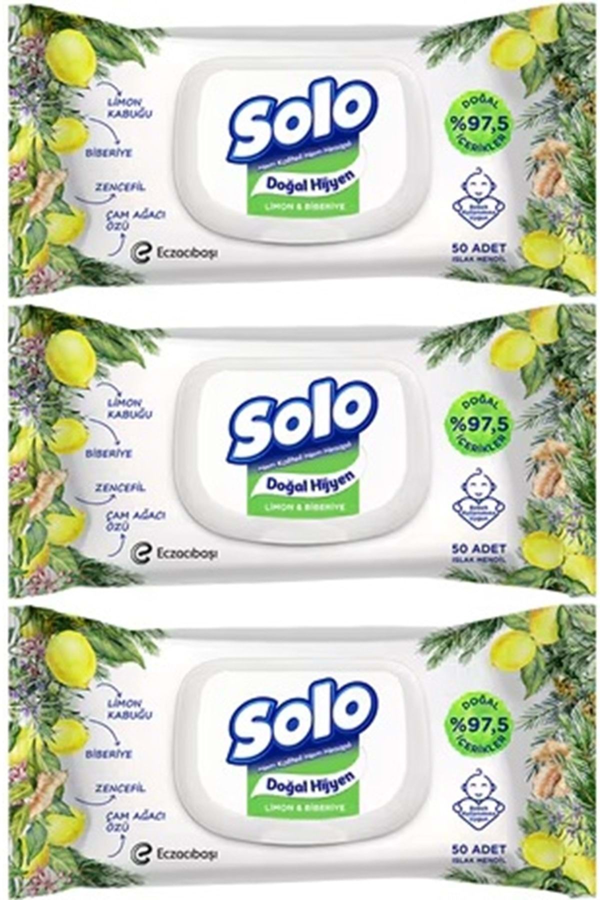 Solo Islak Havlu Mendil 50 Yaprak Limon & Biberiye (9 Lu Set) (3PK*3) 450 Yaprak Solo Islak Havlu Mendil, tazeleyici limon ve biberiye kokusu ile ferah bir temizlik sunar. Cilt dostu formülü sayesinde günlük hijyeninizi kolayca sağlayabilirsiniz. Pratik kapaklı ambalajı ile uzun süre nemini korur, her zaman hijyenik kullanım sağlar. – Limon ve bibariye kokusu ile ferah temizlik – Cilt dostu ve nazik formül – El, yüz ve vücut temizliği için uygun – 50 yaprak ile uzun süre kullanım – Pratik kapaklı ambalaj ile hijyenik kullanım Günlük hijyeninize tazelik katmak için Solo Limon & Biberiye Islak Havlu Mendil yanınızda!
