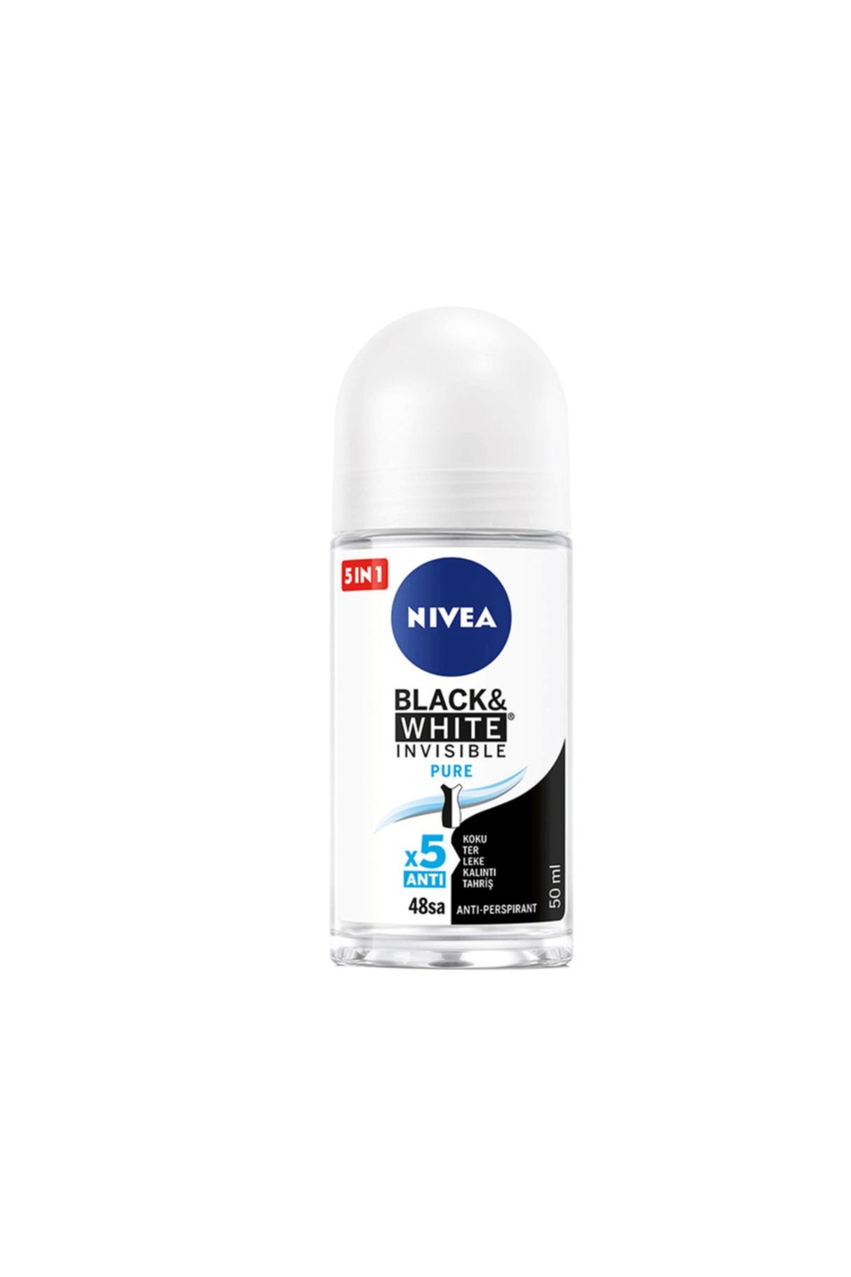NİVEA KADIN ROLL ON BLACK & WHITE INVISIBLE PURE 48sa KORUMA 50 ml x5 ANTI *KOKU * TER *LEKE *KALINTI *TAHRİŞ *ANTI – PERSPIRANT