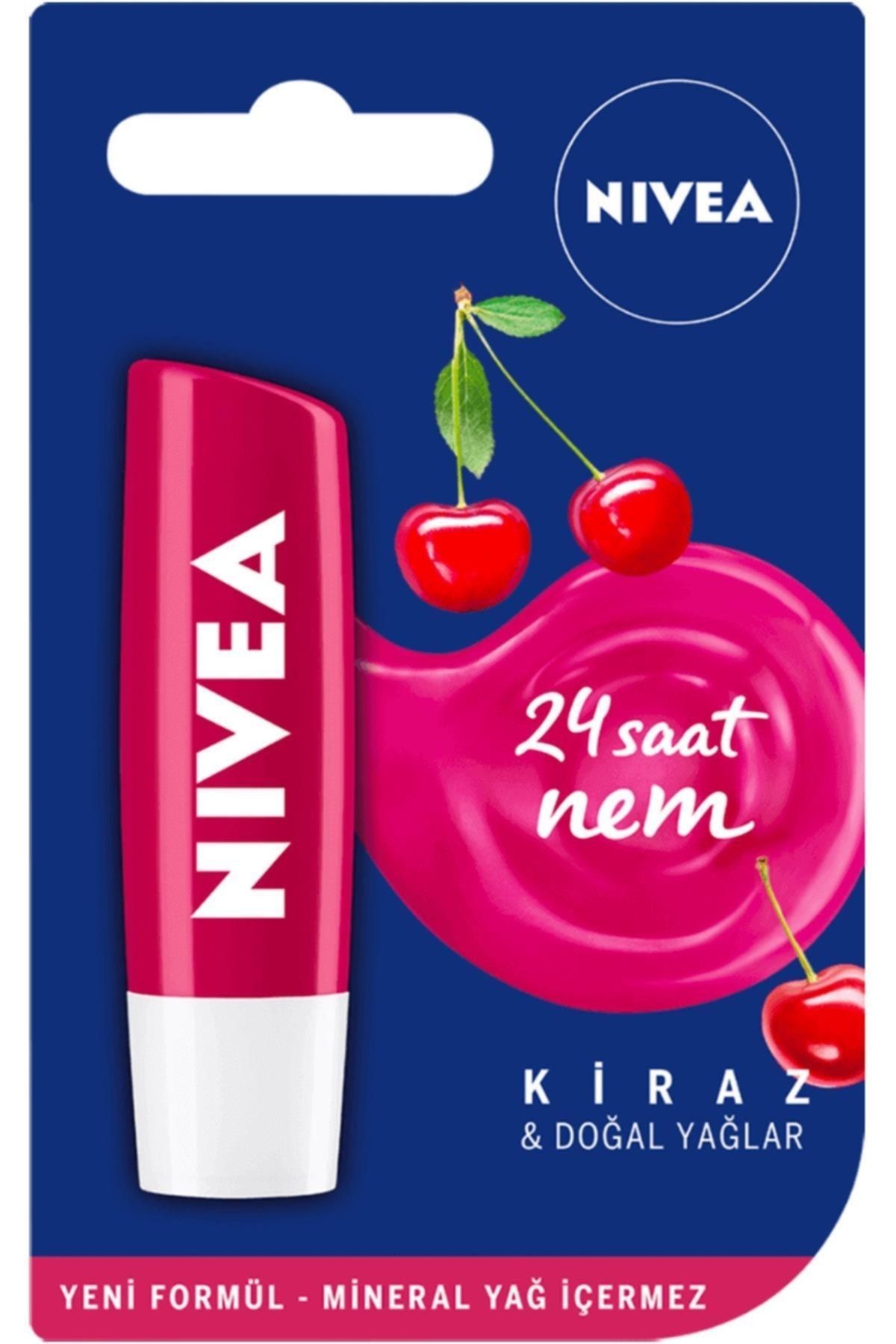 NIVEA® Kiraz dudak bakım kreminin kokusu ve hafif kırmızı ışıltısı ile dudaklarınızı şımartın! Işıltı pigmentleriyle zenginleştirillmiş eşsiz formülü anında dudaklarınız üzerinde erir ve 24 saat boyunca nemli kalmalarını sağlar*. Dudaklarınız üzerinde eşit şekilde dağılır böylece sürmek için aynaya ihtiyaç duymazsınız! Gün boyu ışıltılı ve yumuşacık dudaklar sağlar! *Klinik olarak test edilmiştir. Ciltle uyumu dermatolojik olarak onaylanmıştır.