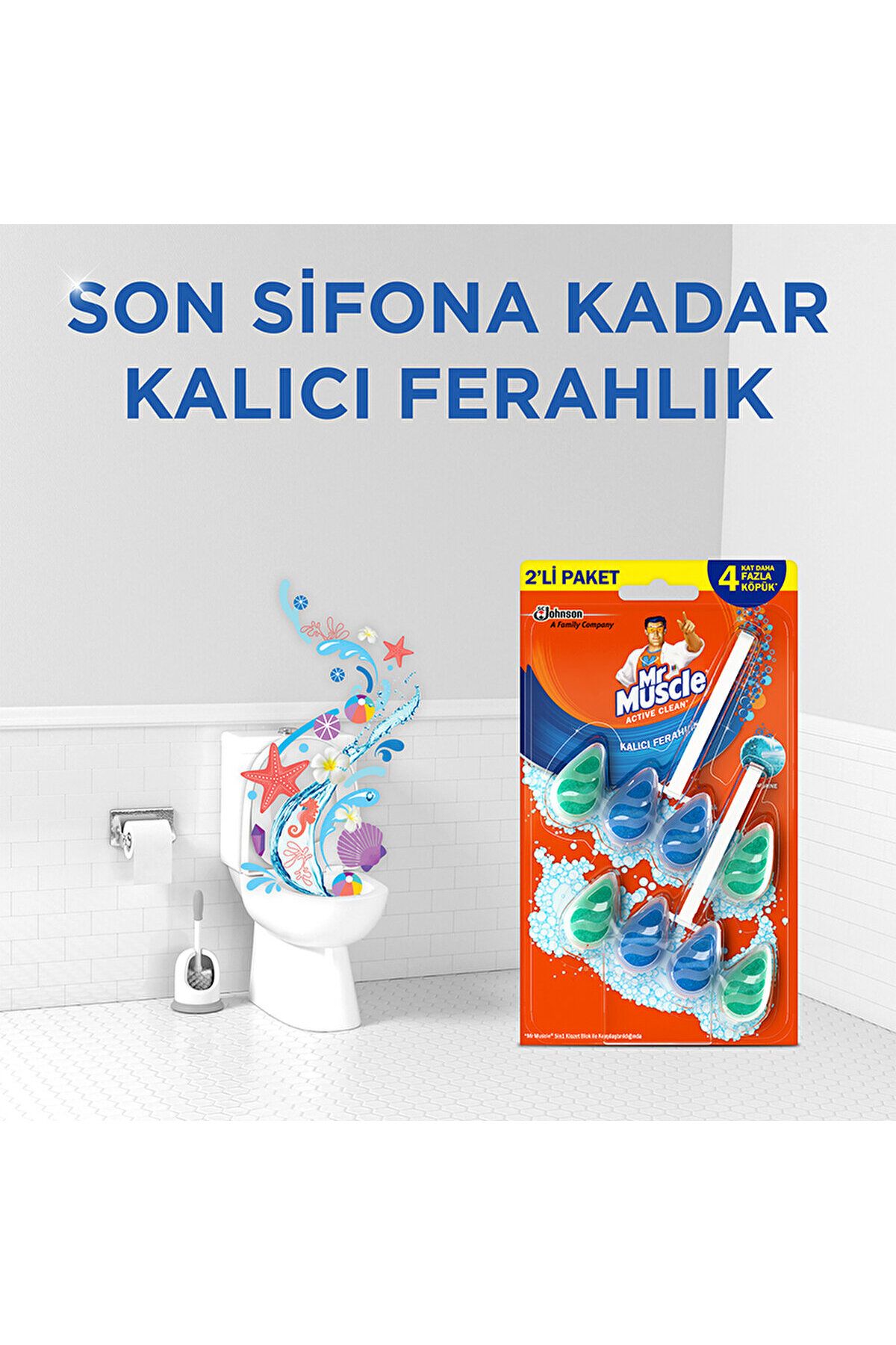 Mr. ; Muscle Active Clean, tuvaletinize her sifonda yenilenen bir ferahlık verir. ; Klozet bloğu klozetinizin iç kısmına yerleştirdikten sonra sifonu her çekişinizde ortaya çıkan temizleyici köpük balonları tuvaletinizi temizleyerek ferah bir koku bırakır. ; Tuvaletinizin temiz ve hijyenik kalmasına yardımcı olarak temizliğe daha az, hayata daha fazla zaman ayırmanıza olanak sağlar. ; • Tuvaletin temiz olduğundan emin olun. ; • Askısını açın ve klozet bloğu klozetin iç kısmına gelecek şekilde asın. ; • Klozet bloğu, sifon çekildiğinde suyun akış hattında olacak şekilde konumlandırın. ; • Tamamen bittiğinde ürünü çıkarın ve atın.;