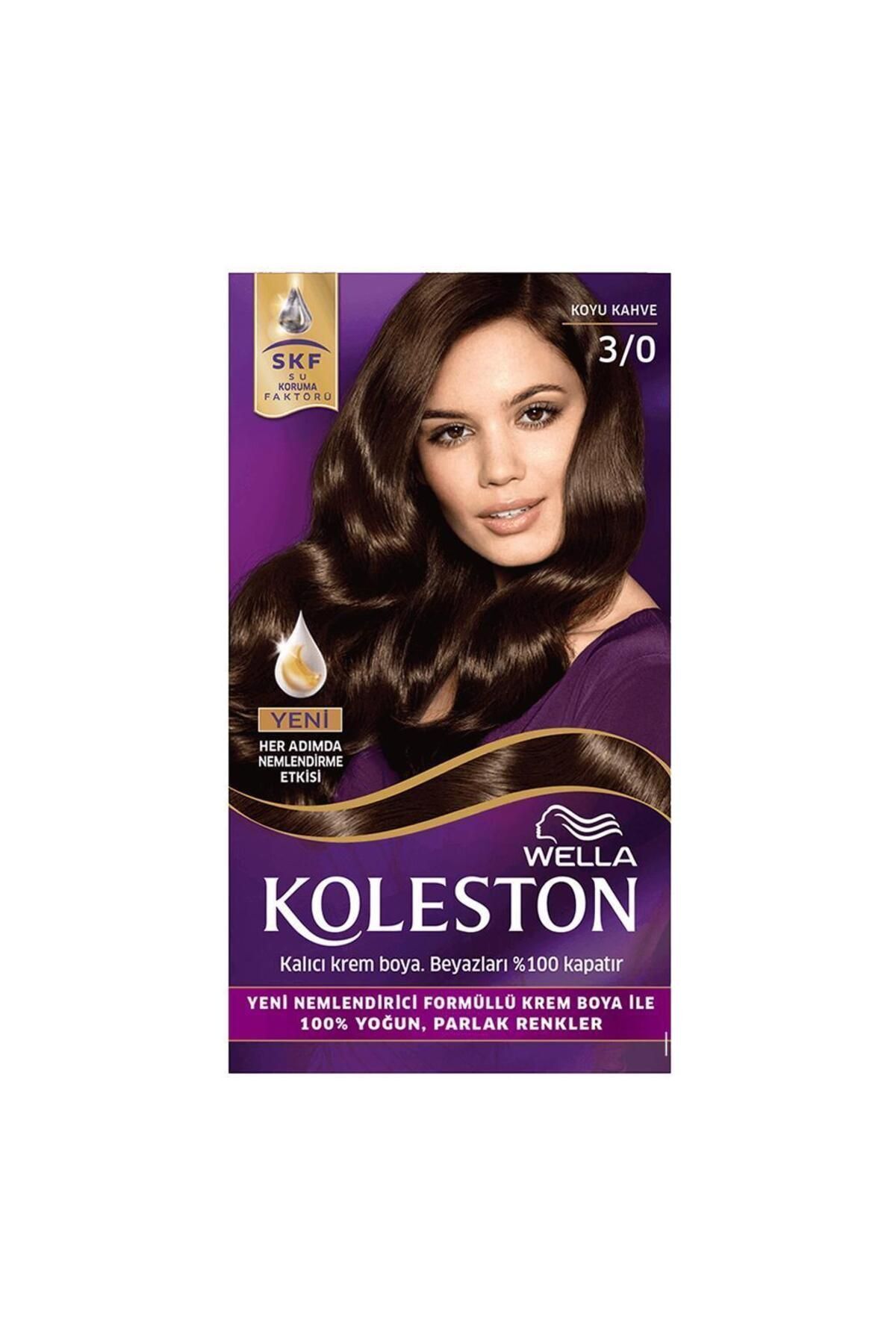 Koleston Kit 3.0 Koyu Kahve Wella 1 Tüp Krem Boya 50ml; 1 Şişe Oksidasyon Kremi 50ml; 1 Adet Renk Aktifleştirici 22ml; 2 Adet Yoğun Parlaklık Veren Bakım Kürü 2x10ml; 2 Çift Eldiven; 1 Adet Kullanım Kılavuzu; Koleston Su Koruma Faktörü ile saç renginizin yoğunluğunu daha fazla koruyun.; Koruma faktörü teknolojisi içeren Yoğun Parlaklık Veren Saç Bakım Kürü daha fazla renk yoğunluğu korumak için saçınızın daha parlak ve suya daha dayanıklı olmasına yardım eden koruyucu bir bariyer olarak görev yapar.