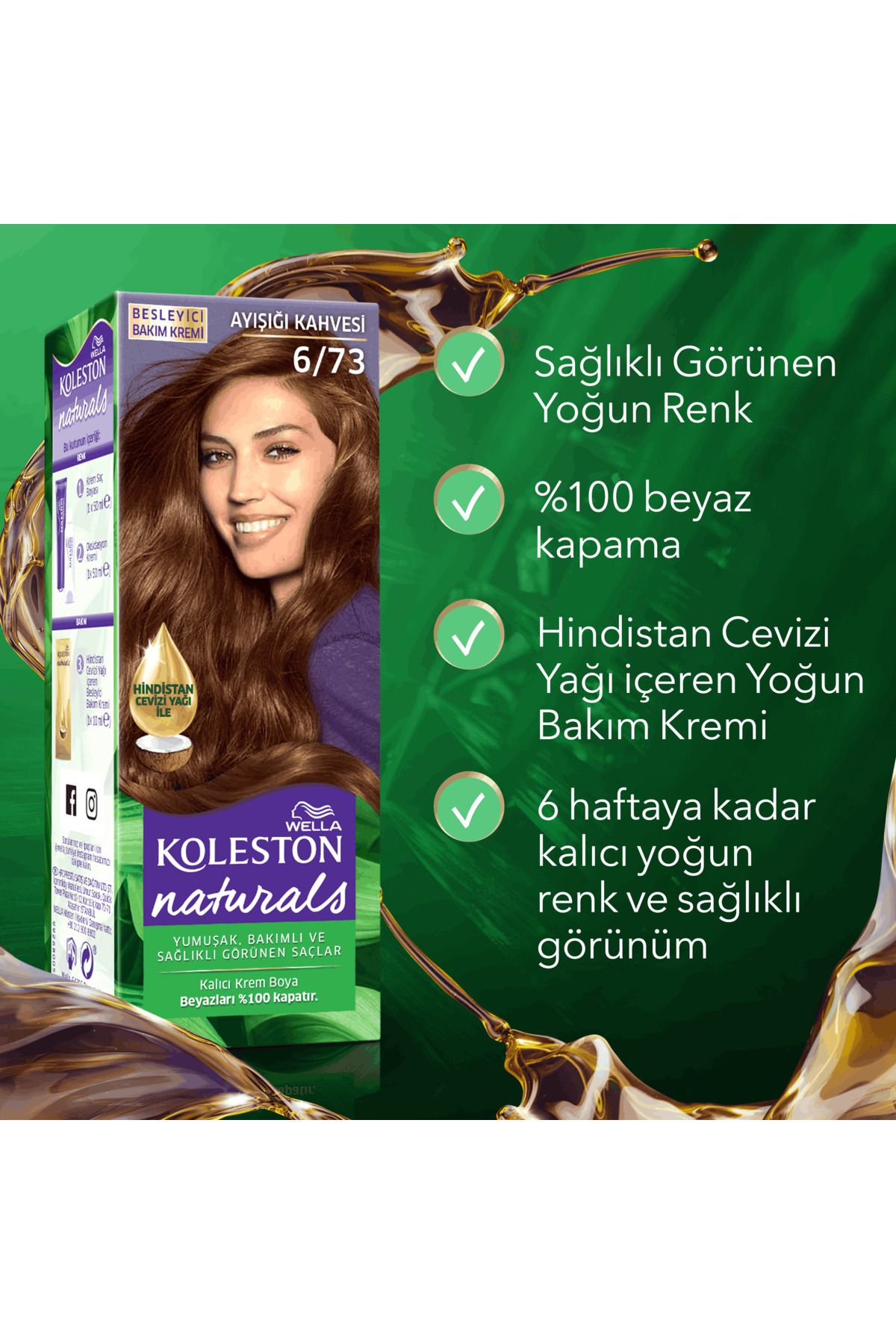 6 haftaya kadar kalıcı yoğun renk ve sağlıklı görünüm;En dirençli beyazlarda bile mükemmel beyaz kapama;Yoğun renk pigmentleri;Hindistan Cevizi Yağı içeren Yoğun Bakım Kremi