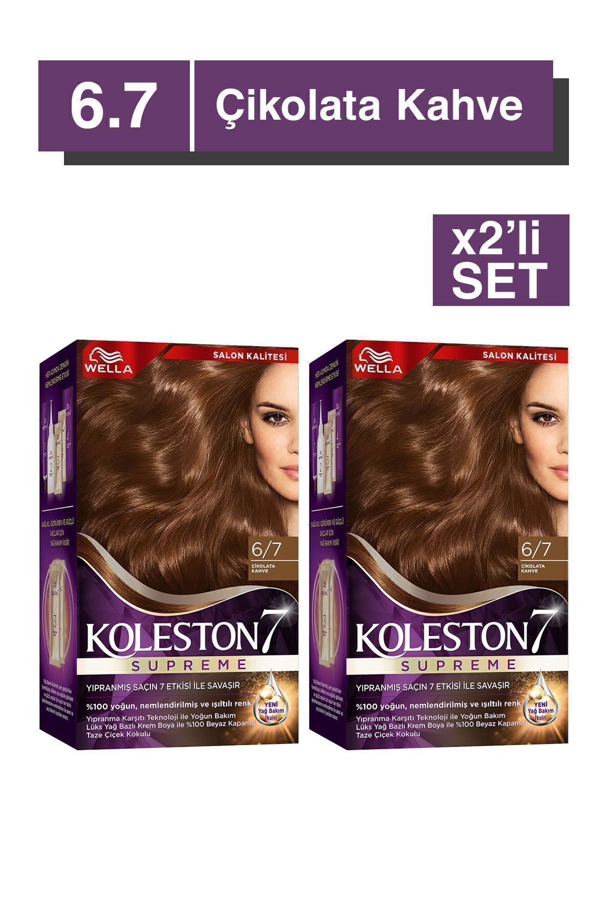 Koleston Supreme Kit ile yoğun ve suya dayanıklı bir renk elde edin. ; * Lüks Krem Boya: Saça güzel, zengin bir renk vermek ve beyazları kusursuz şekilde kapatmak için renk pigmentleri, saçın derinliklerine nüfuz eder. ; * Yağ Bakım Iksiri Bakım Kremleri: Plex teknolojisiyle, 1. ; günde boyama işleminden sonra kullanım için, sonraki 30 gün parlaklığı ve sağlıklı görünümü korumak için kullanılır. ; * Renk Aktifleştirici Krem: 15. ; günde saç renginizi yeniden canlandırmak için kullanılır. ; Bu paketin icindekiler: 1 adet Lüks Krem Boya, 50 ml 1 adet Oksidasyon Kremi, 50 ml 1 adet Renk Aktifleştirici Krem, 15 ml 2 adet Yağ Bakım Iksiri, 2x 10 ml 1 Çift eldiven 1 Kullanım kılavuzu;