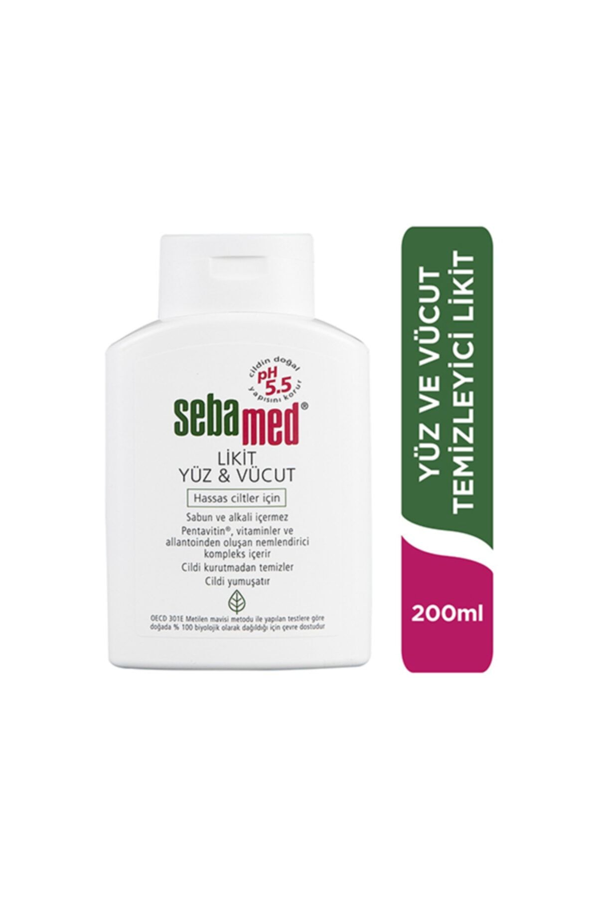 Sebamed Likit Yüz & Vücut Temizleyici 200 ml Sebamed Likid Yüz & Vücut, vitaminler, allantoin ve aktif nemlendirici bakım kompleksi Pentavitin ile zenginleştirilmiş formülüyle cildi nem kaybına karşı korur. ; • El, yüz, vücut ve makyaj temizliği için uygundur. ; Kullanımı: Cildinizi ıslatın, az bir miktar sebamed pH 5.5 Likid’i elinize ya da süngere dökerek köpürtün, durulayın.;