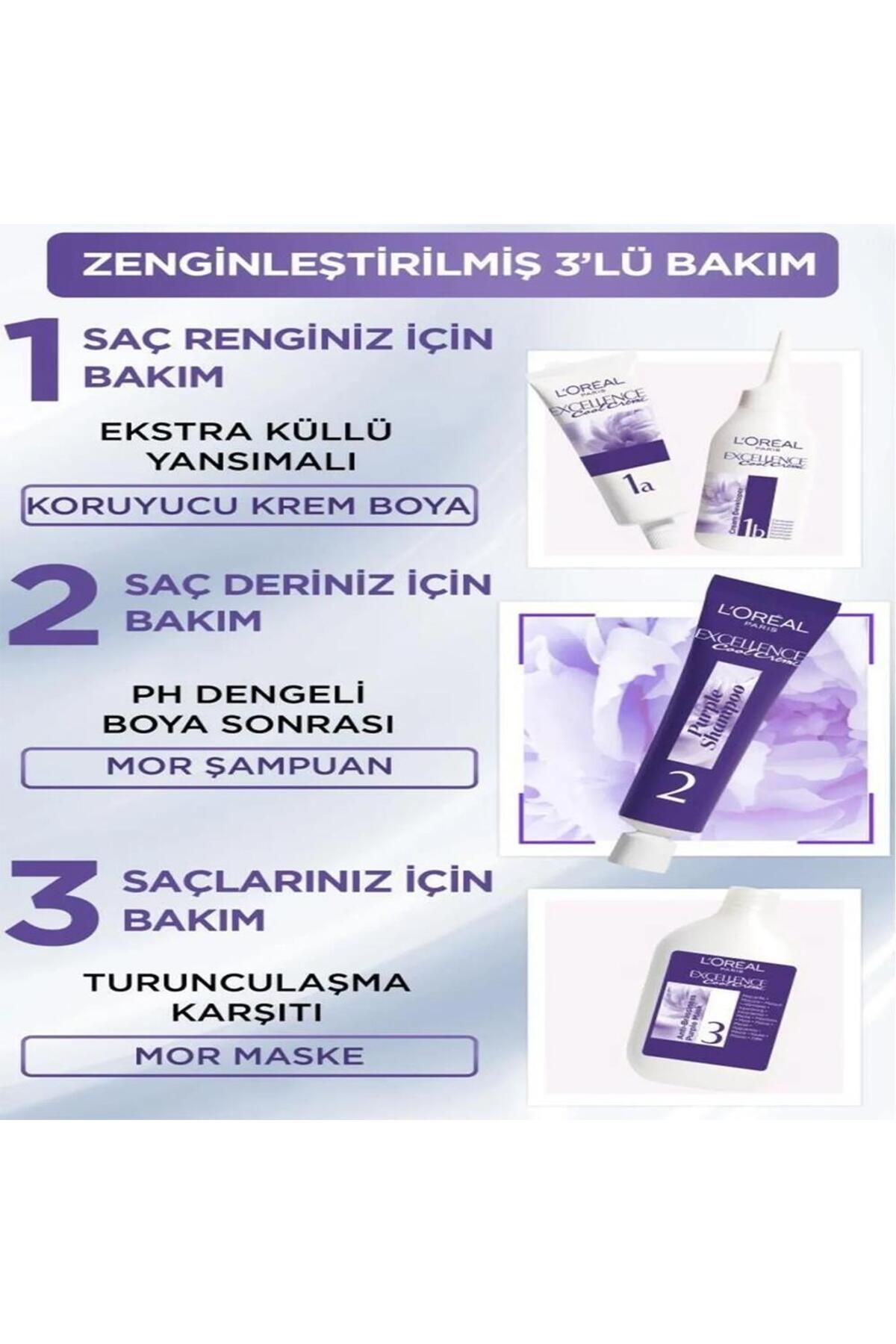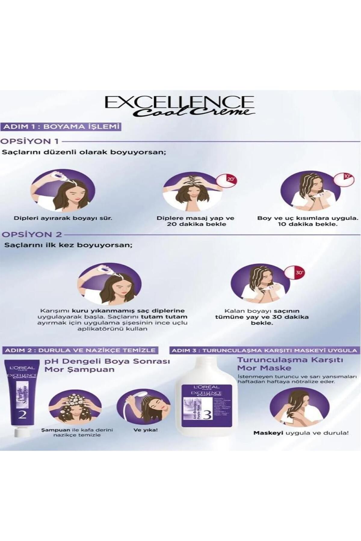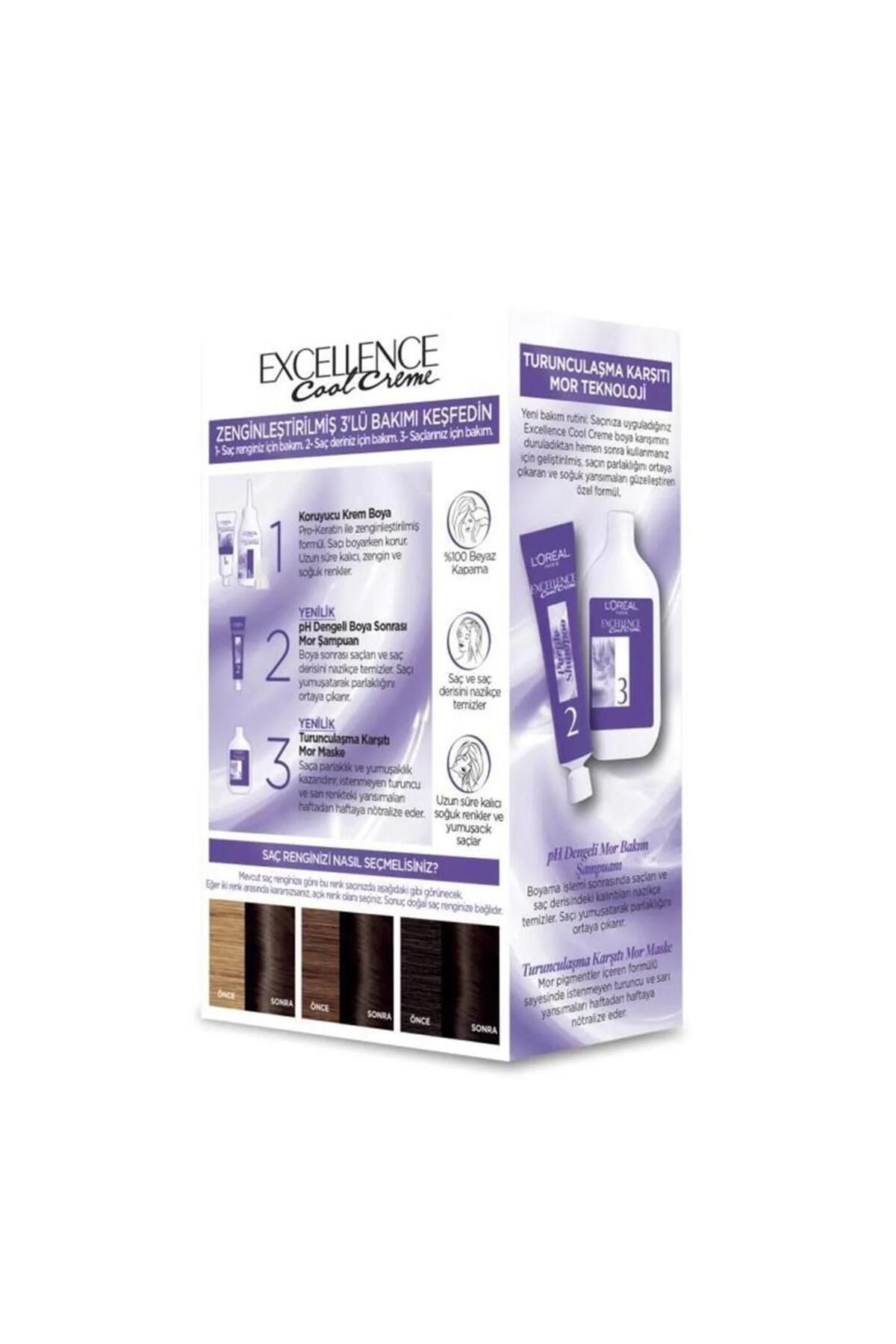 Loreal Paris Excellence Cool Creme Saç Boyası 4.11 Ekstra Küllü Kahve, Excellence cool creme’in zenginleştirilmiş 3’lü bakım: Pro-Keratin içeren koruyucu krem boya, turunculaşma karşıtı mor teknolojiye sahip ph dengeli mor şampuanı ve mor maskesi sayesinde uzun süre kalıcı soğuk renkler ve %100 beyaz kapama!ph dengeli boya sonrası mor şampuan ile saçlarınızı ve saç derinizi nazikçe temizlerken eşsiz bir bakım uygular. ; Saçı yumuşatarak parlaklığını ortaya çıkarır. ; Turunculaşma karşıtı mor maske ile saça parlaklık ve yumuşaklık kazandırır, istenmeyen turuncu ve sarı renkteki yansımaları haftadan haftaya nötralize eder.;