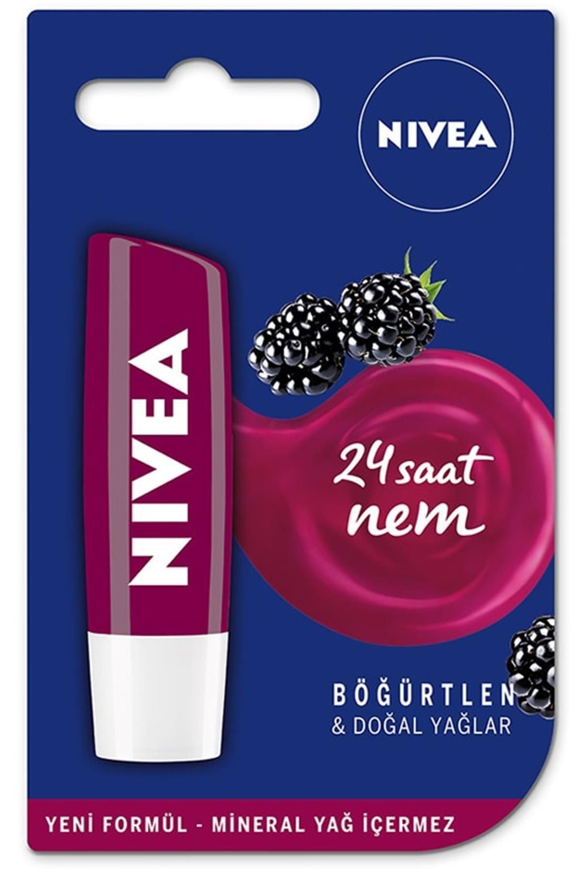 NIVEA® Böğürtlen dudak bakım kreminin kokusu ve hafif bordo ışıltısı ile dudaklarınızı şımartın! Işıltı pigmentleriyle zenginleştirilmiş eşsiz formülü anında dudaklarınız üzerinde erir ve 24 saat boyunca nemli kalmalarını sağlar*. Dudaklarınız üzerinde eşit şekilde dağılır böylece sürmek için aynaya ihtiyaç duymazsınız! Gün boyu ışıltılı ve yumuşacık dudaklar sağlar! *Klinik olarak test edilmiştir. Ciltle uyumu dermatolojik olarak onaylanmıştır.