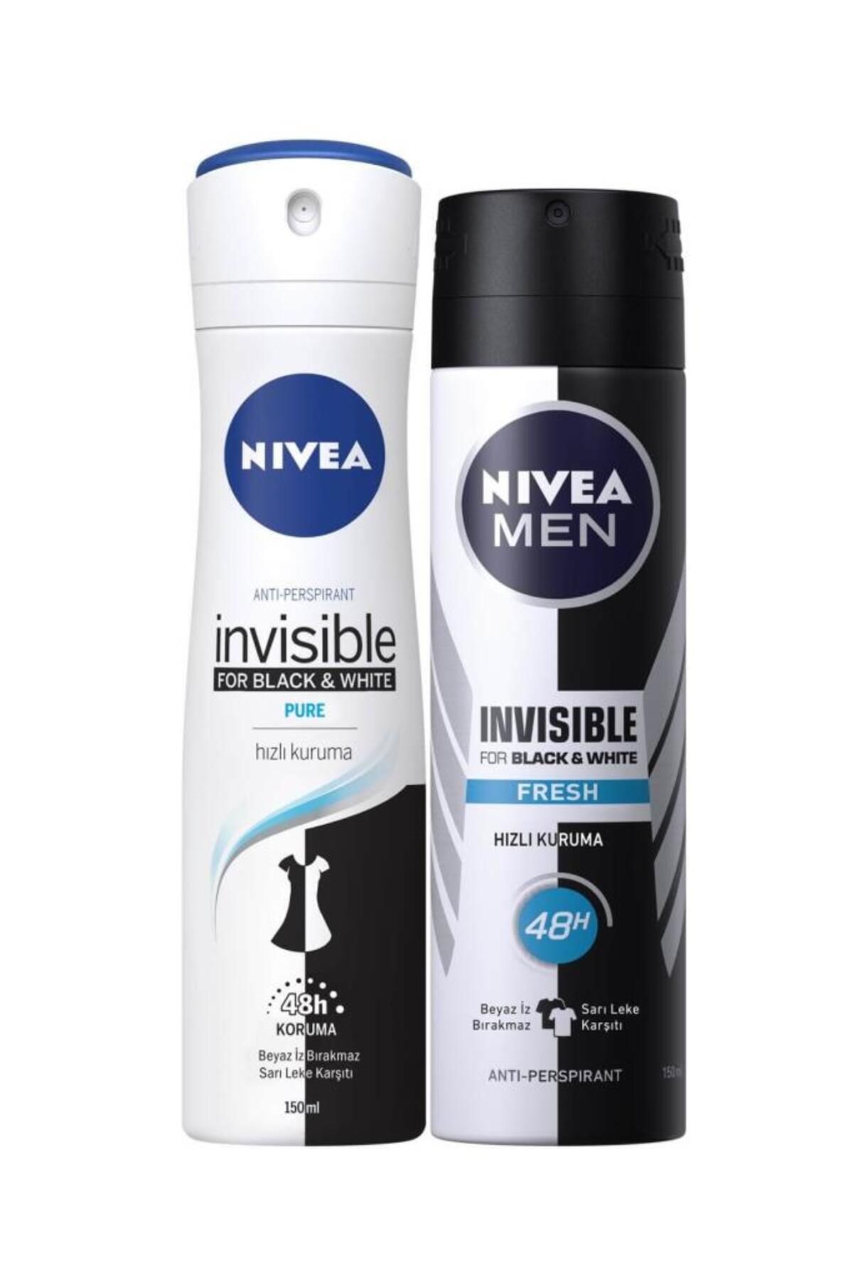 Men Erkek Sprey Deodorant Black&white Fresh 150ml Ve Kadın Sprey Deodorant Black&white Pure 150ml