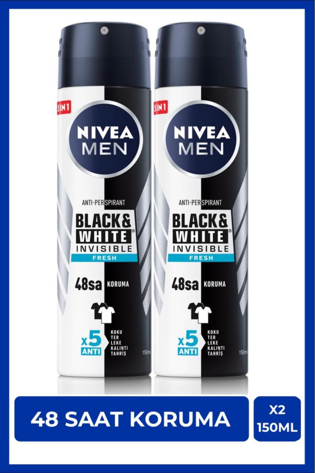 •NIVEA MEN Erkek Sprey Deodorant Black&White Invisible Fresh; 48 saate kadar etkili ter kokusuna ve terlemeye karşı koruma sağlarken açık renk giysilerde sarı leke, koyu renk giysilerde ise beyaz iz oluşumuna karşıdır.; • Siyahlar siyah, beyazlar daha uzun süre beyaz kalır.; •Ciltle uyumu dermatolojik olarak kanıtlanmıştır.; •Etil alkol içermez.