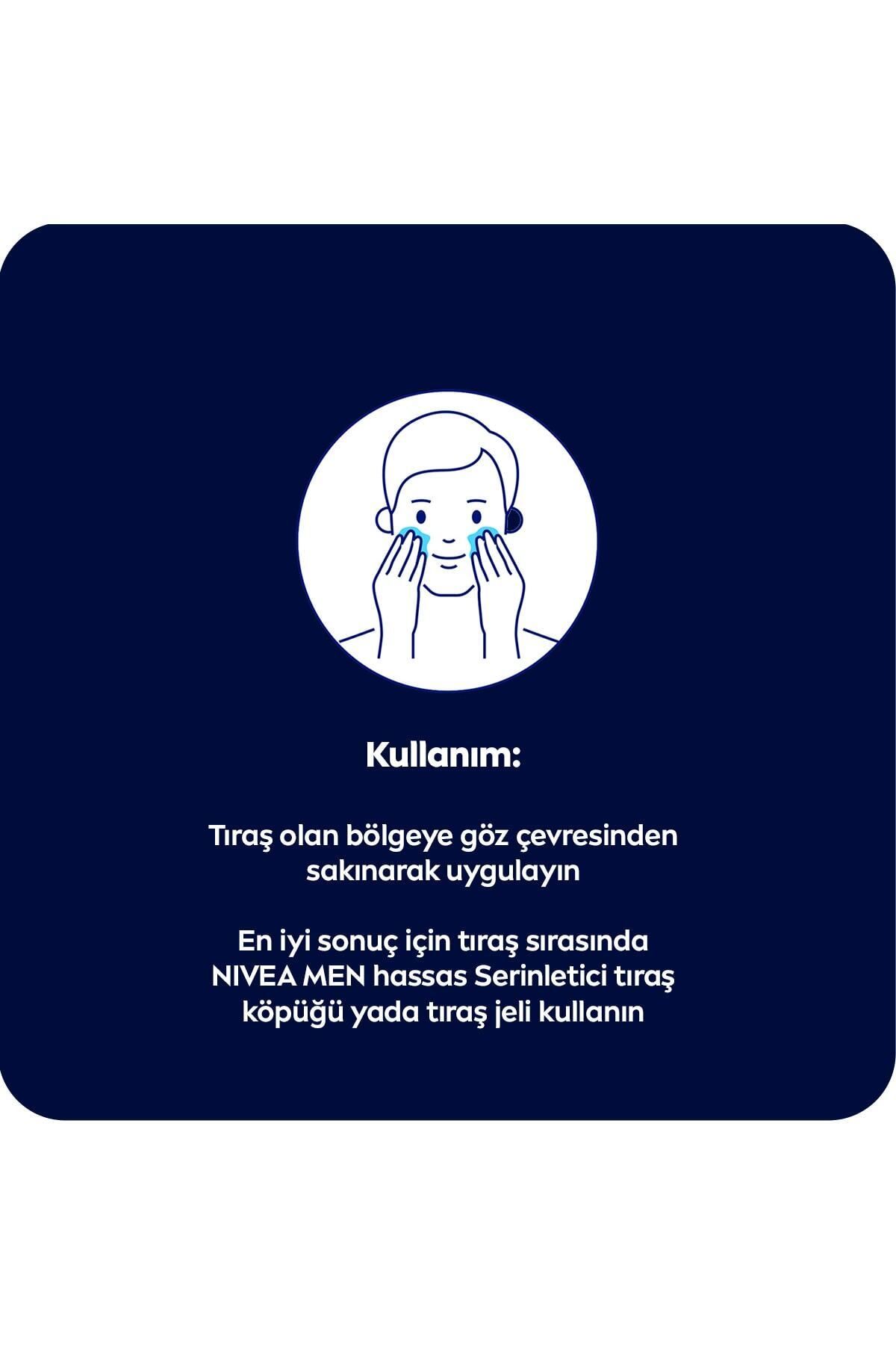Alkolsüz* Formül: NIVEA Men Hassas Serinletici Tıraş sonrası balsam alkolsüz formülü ile tıraş sonrası hassaslaşan cildin yatışmasına yardımcı olur. *Etil alkol içermez;Cildi anında rahatlatır ve serinletir;Uzun süren ferahlık ve ciltte tazelenme hissiyatı;Hızlı emilen formül: Ciltte yapışkan bir his bırakmaz, cilt tarafından kolayca emilir;Papatya ve deniz yosunu i içeren geliştirilmiş formülü sayesinde ile cilt kızarıklığını ve kuruluğunu azaltır.;Hassas ciltlerde cilde uyumu dermatolojik olarak onaylanmıştır;Nasıl kullanılır: Tıraş sonrası yüze ve boyun bölgesine uygulayın. Göz çevresine uygulamaktan kaçının;Almanya’da üretilmiştir;Sağlıklı bir görünüm için: NIVEA Men Hassas Tıraş Köpüğü ve tıraş sonrasında NIVEA Men Hassas Serinletici Tıraş sonrası balsam kullanmanızı tavsiye ederiz.;NIVEA Bakım Güvencemiz: EN yüksek kalite standartlarına sahip içerikleri seçiyoruz