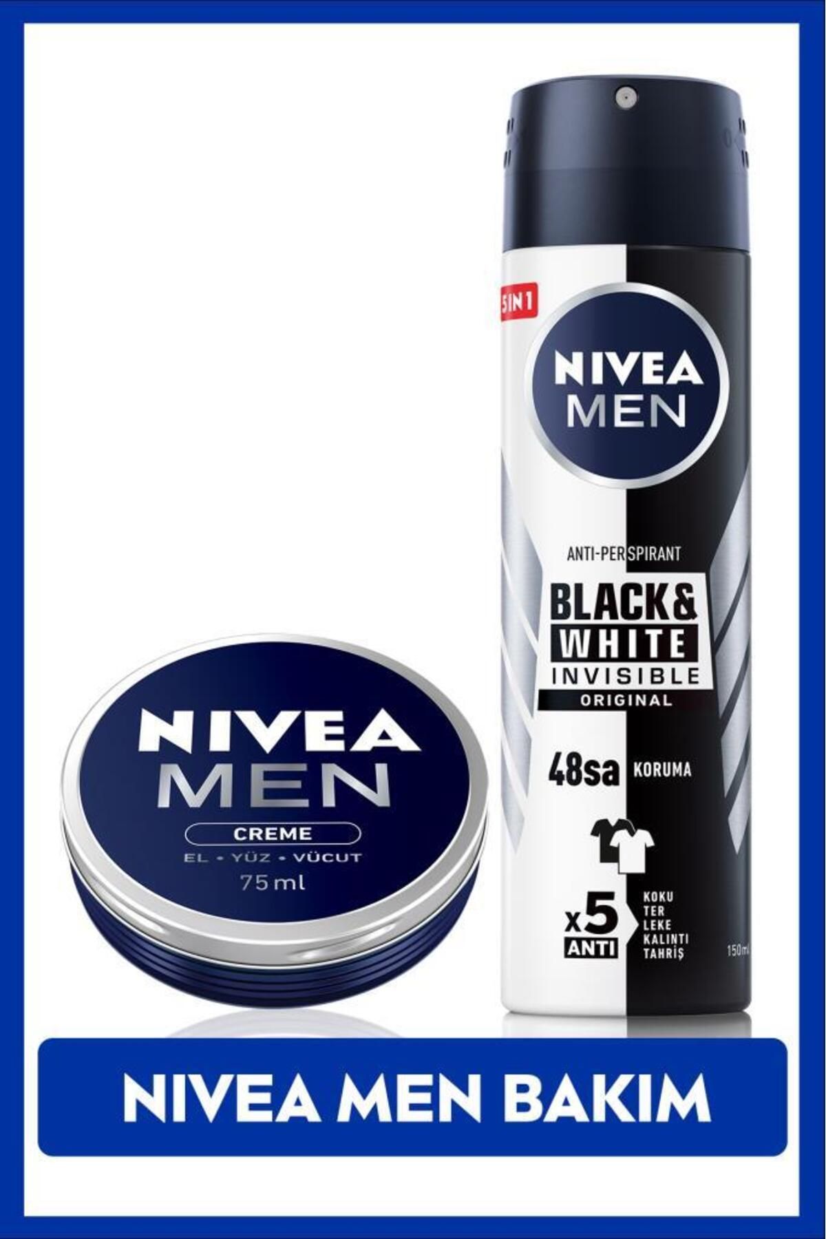 Türkiye’nin Lider Deodorant Markası NIVEA’dan 48 saate kadar etkili ter kokusuna ve terlemeye karşı koruma sağlarken açık renk giysilerde sarı leke, koyu renk giysilerde ise beyaz iz oluşumuna karşıdır.; Siyahlar siyah, beyazlar daha uzun süre beyaz kalır.; Cildinize önem veren 48 saate kadar etkili anti-perspirant koruması sağlar.; Nasıl Kullanılır?: Kutuyu dik tutarak 15cm mesafeden çıplak ve temiz koltuk altına püskürtün.; Ürün koltuk altına uyguladıktan sonra tamaMEN kurumasını bekleyin.; Hangi Cilt Tipleri İçin Uygundur?: Tüm cilt tipleri için uygundur.; Kişisel bakım rutininizin vazgeçilmezi!: Vücudunuzu NIVEA Man Active Clean Duş Jeli ile yıkadıktan sonra temiz koltuk altınıza uygulayabilirsiniz.; NIVEA MEN Creme Erkek bakım kremi cildi nemlendirir ve kurumasını önler.; Hızlı emilen ve hafif formül: Bakım kremi saniyeler içinde tamaMEN emilir.; Yağlı ve yapışkan his bırakmaz.; Tüm Vücut için kullanım: E-vitaminli etkili formülü el, vücut ve yüz bölgeleri kullanımı için uygundur.; Erkeksi kokusu ile cildinizde hoş bir koku bırakır.; Erkek cildi için özel olarak geliştirilmiştir.; NIVEA Bakım Güvencemiz: 110 yıllık cilt bakım uzmanlığımız ile EN yüksek kalite standartlarına sahip içerikleri seçiyoruz En iyi sonuç için NIVEA MEN kremi el, vücut ve yüz bölgesine günlük olarak uygulayın.