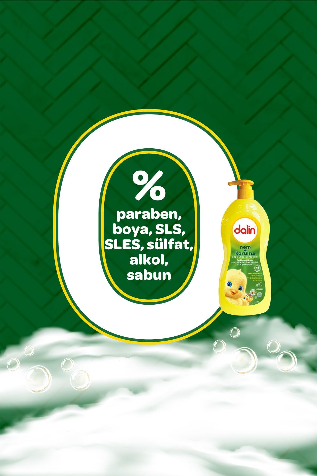 Dalin Nem & Koruma Saç ve Vücut Şampuanı 700 ml Dalin Nem ve Koruma Şampuanı, klinik testlerle yumuşaklığı kanıtlanan formülü sayesinde, gözleri yakmaz. Doğal kaynaklı nemlendiricilerden oluşan özel formülü ile cilt bariyerini destekler. Cildin doğal nemini korumayı sağlayan pentavitin maddesini içerir. Paraben, boya, SLS, SLES, sülfat, alkol, sabun içermez. Hipoalerjeniktir. Dermatolojik ve oftalmolojik gözlem altında, uzun süreli kullanım ile test edilmiştir.