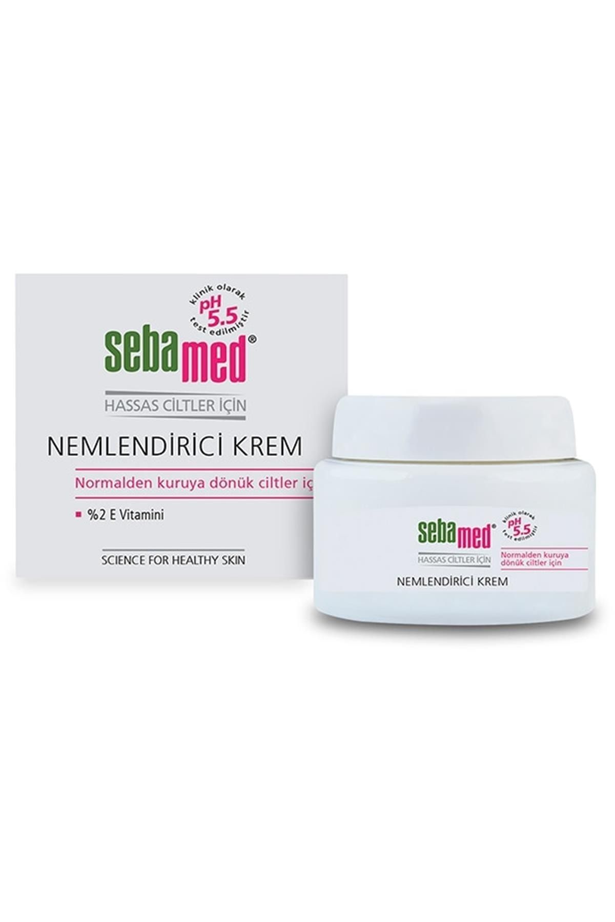Sebamed Nemlendirici Yüz Kremi 75 ml SEBAMED NEMLENDİRİCİ KREM KAVANOZ ( gündüz ) 75 ml ; • Sebamed Nemlendirici Krem, hassas ciltler için geliştirilmiş, günün 24 saati cildi zararlı çevresel etkilere karşı koruyan ve nemlendiren bakım ürünüdür. • Yoğun E vitamini içeriği sayesinde cildi erken yaşlanmaya karşı korur. • İdeal bir makyaj altı kremidir. • Dermatolojik olarak test edilmiştir.