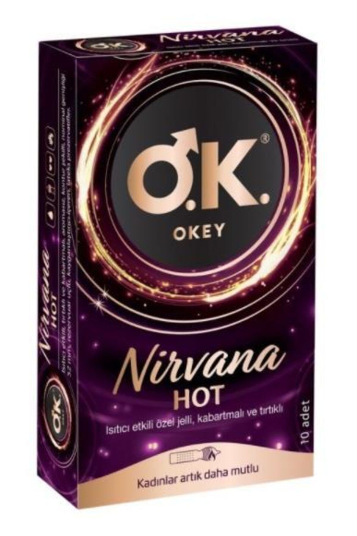 Okey Prezervatif Nirvana Hot 10 AdetOkey Nirvana Hot PrezervatifÜrün Özelliği;• OKEY Nirvana Hot, ilişkinin hazzını uyarıcı dokunuşlarla yükselten yapısı ve çiftleri birbirlerine yakınlaştıran sıcak enerjisiyle geceleri unutulmaz anılarla süslemeye hazır.• O benzersiz dokusu ile paylaşılan tecrübenin hazzını doruklara çıkarırken, siz de partnerinizin teniyle bir olmanın ve vücudunuzda hayat bulan aşk ateşiyle yanmanın keyfine varın!• Nirvana Hot birlikteliğin coşkusunu bedeninin her zerresine işler.• Zirvede sıcacık olmak isteyenlere• İlişki tecrübesine bilinmeyen dünyalara yapılacak maceraperest keşiflerin gizemli enerjisini işleyen Nirvana Hot, tensel birlikteliklere seviye atlatacak.• Tırtıklı ve kabartmalı dokuyu ısıtıcı etkili jeli ile beraber tek bünyede toplayan Nirvana Hot, kadının zevkini zirveye taşıyor.• Her dokunuşun, her temasın kendini ortaya koyan büyülü lezzetiyle buluşan kadını onun coşkusundan beslenen partneriyle buluşturan tırtıklı, kabartmalı ve ısıtıcı etkili özel jelli Nirvana Hot, çiftlere hafızalara kazınacak aşk dolu anlar vadediyor.• Siz de ona duyduğunuz aşkın bedensel titreşimlerin ve tatlı dokunuşların senfonisine dönüştüğü eşsiz anlarınızı Nirvana Hot’ın tutkusuyla süsleyin.• Nirvana Hot’ın partnerinizin tutku dolu bedeniyle yapacağınız buluşmayı kolaylaştırırken tenleri sıcak arzularla buluşturan ısıtıcı etkili özel jel formuna bayılacaksınız!• Tek el ile hızlıca açılabilen paketi ve pratik tasarımı sayesinde birlikteliğin ritmini bozmadan kullanabileceğiniz Nirvana Hot, deneyimlerin vazgeçilmez parçası olmaya aday. Ürün Kullanımı;• Korumanın tam olabilmesi için Okey’in cinsel birleşme öncesinde takılması şarttır.• OKEY kendi üzerine sarılı bir şekilde, rulo olarak paketlenmiştir. Boşalacak meni ucundaki hazneyi içinde hava kalmayacak şekilde tutun.• Penis başına yerleştirin ve kıvrımlı bölümü yuvarlayarak takın.• Sarılı bölümü organın sonuna kadar açın.• Boşalmanın ardından OKEY’i dip kısmından tutarak açık şeklini muhafaza eder şekilde çıkartın ve ağzını bağlayarak çöpe atın.