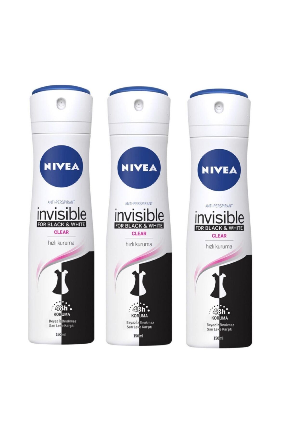 NIVEA DEODORANT SPREY 150ML BLACK&WHITE CLEAR WOMEN X3