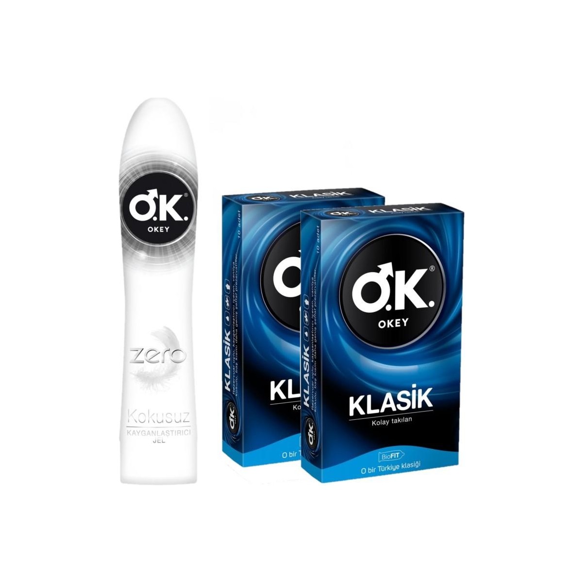 Okey Zero Kayganlaştırıcı Jel 100ML ve Okey Klasik Prezervatif 10LU – 3lü Set