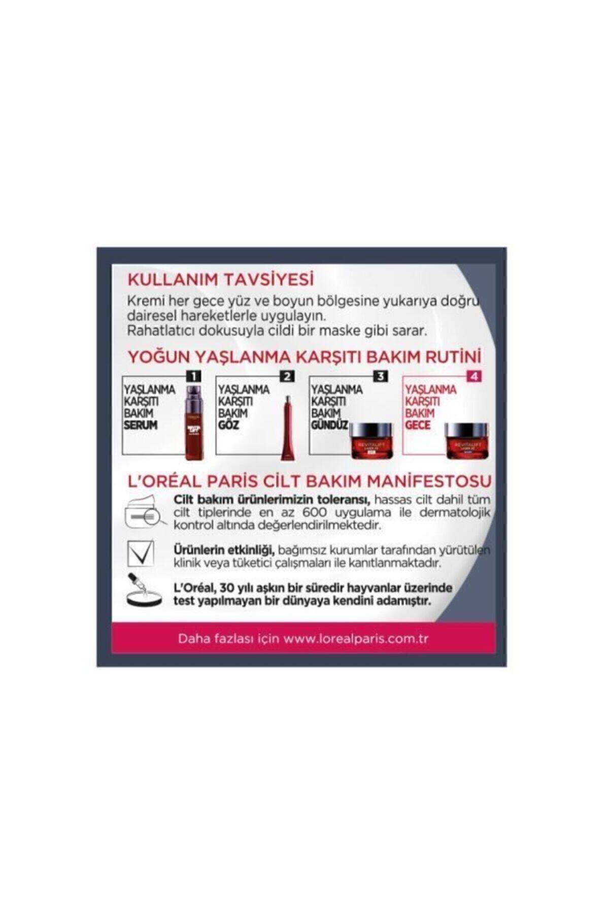 Loreal paris revitalift lazer x3 yoğun yaşlanma karşıtı bakım kremi gece 50 ml>belirgin ve yoğun yaşlanma izlerine karşı tasarlanmıştır.>cilt dokusunun yenilenmesini ve düzletilmesini sağlar.>cildi nemlendirir, cilt tonunun eşitlenmesini sağlar.>kırışıklık, ince çizgi ve kazayağı görünümünü azaltır.>cildin daha sıkı ve pürüzsüz görünmesini sağlar.>40 yaş üzeri kişilerde kullanıma uygundur. Loreal paris revitalift lazer x3 yoğun yaşlanma karşıtı bakım kremi gece içerik>hyalüronik asit: Cildi nemlendirir, cildin esnekliğini ve pürüzsüzlüğünü artırır. Loreal paris revitalift lazer x3 yoğun yaşlanma karşıtı bakım kremi gece kullanımı>uygun miktardaki ürünü her akşam yatmadan önce, temiz yüz ve boyuna dairesel hareketlerle uygulayın.