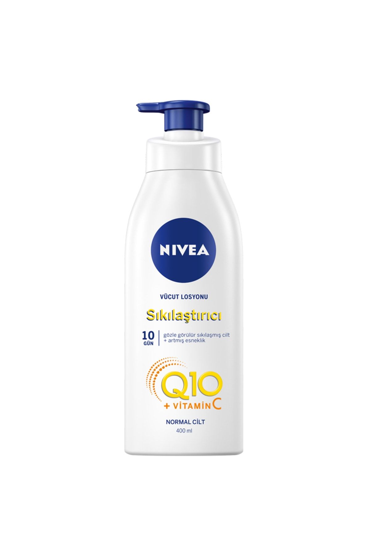NIVEA’dan NIVEA Q10 Sıkılaştırıcı vücut Losyonu ile sıkı ve elastik bir cilde hazır mısın? 10 Günde Sıkılaşma: İçeriğindeki Q10 ve C vitamini ile geliştirilmiş formulü sayesinde cilt 10 günde gözle görülür derece sıkılaşmasına ve esnekliğinin artmasını sağlar. 48 Saat Nemlendirme: Hızlı emilen vücut losyonu ile 48 saat boyunca yoğun nemlendirme sağlar. • Ciltle uyumu dermatolojik olarak onaylanmıştır. • Tüm ciltler için uygundur. • Almanya’da üretilmiştir. • 48 saat vücut nemlendirme, 10 günde sıkılaşma, normal ciltler için, vücut bakım. Nasıl Kullanılır? NIVEA vücut losyonunu günlük kullanımda tüm vücudunuza nazikçe yayın ve masaj yaparak uygulayın-uygulama sırasında kayıp düşmemeye dikkat edin. Uygulama sırasında masaj yapın. En iyi sonuç için tüm vücudunuza her gün uygulamanızı tavsiye ederiz.