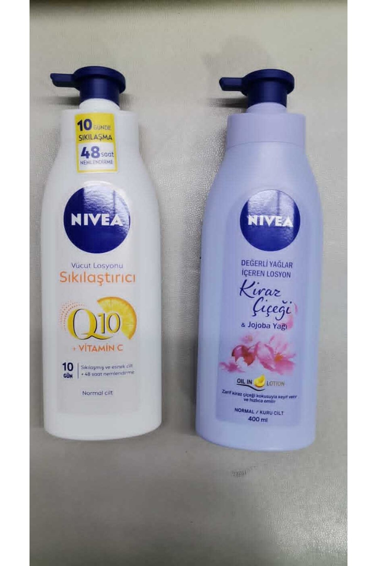 Nivea Q10 Sıkılaştırıcı Vücut Losyonu 4000 ml + Kiraz Çiçeği & Jojoba Yağı Pump Losyon 400 ML NIVEA Q10 Sıkılaştırıcı Vücut Losyonu iki antioksidan içerik ile zenginleştirildi: Q10 ve Vitamin C; Geliştirilmiş formülü ile 10 günde cildi gözle görülür derecede sıkılaştırır ve esnekliğini artırır; Hızlı emilen losyon ile 48 saat boyunca yoğun nemlendirme sağlar; • 100 yıllık cilt bakım uzmanlığı; • Ciltle uyumu dermatolojik olarak onaylanmıştır; • Tüm içerikler yüksek kalite standartlarına göre seçilmiştir; ; ;;