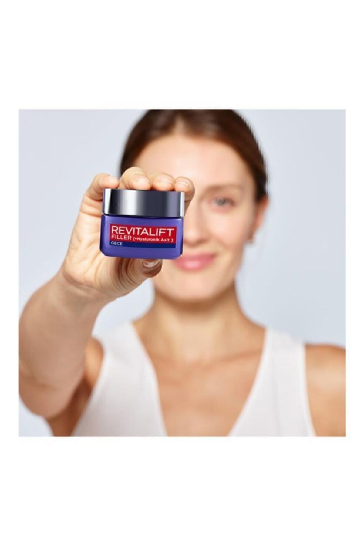 Cildin 10 Yıl Önceki Dolgunluğunu Geri Kazandırır; ve Geceden Geceye Kırışıklıkları Doldurur Formülündeki Mikro Dolgunlaştırıcı Hyaluronik Asit 50 Kat Daha Küçük Yapısıyla Cilde Yoğun Şekilde Nüfuz Ederek Kırışıklıkları Doldurur ve Cilde Dolgunluğunu Geri Kazandırır; Hyaluronik Asit’in gücü ve Galanga Özü ile zenginleştirilmiş formülü kırışıklıkları ve uyku sırasında oluşan çizgileri doldurmaya yardımcı olur, sabahları daha rahat bir cilde kavuşmanızı sağlar; ANINDA: 48 saat; boyunca cilde nemi hapseder; 1 gece kullanımdan sonra cilt daha esnek ve yumuşak hissedilir; 4 HAFTADA: Cilt dolgunlaşır ve kırışıklık görünümü azalır; Klinik Skorlama, 58 kadın; Instrumental Test, 24 kişi Hyaluronik Asit Enjeksiyonlarından İlham Alan Formülüyle Cildin 10 Yıl Önceki Dolgunluğunu Geri Kazandırır; Formülündeki Mikro Dolgunlaştırıcı Hyaluronik Asit 50 Kat Daha Küçük Yapısıyla Cilde Yoğun Şekilde Nüfuz Ederek Kırışıklıkları Doldurur ve Cildi Dolgunlaştırır; ANINDA: Nemlendirir ve 48 saat; boyunca cilde nemi hapseder; Cilt gerginliği (+25%) ve sıkılığı (+14%) artar; 1 HAFTADA: Kadınların %82’sinde daha pürüzsüz bir cilt; 4 HAFTADA: Cilt dolgunlaşır ve kırışıklık görünümü azalır; Her gün iyice temizlenmiş yüz ve boyun bölgesine yukarı doğru dairesel hareketlerle uygulayın; Instrumental Test, 48 Kadın, 5 Haftalık Uygulama + 1 Hafta Kalıcılık; Instrumental Test, 24 kişi; Instrumental test, 40 kadın; Tüketici Testi, 60 kadın; Klinik skorlama, 58 kadın;